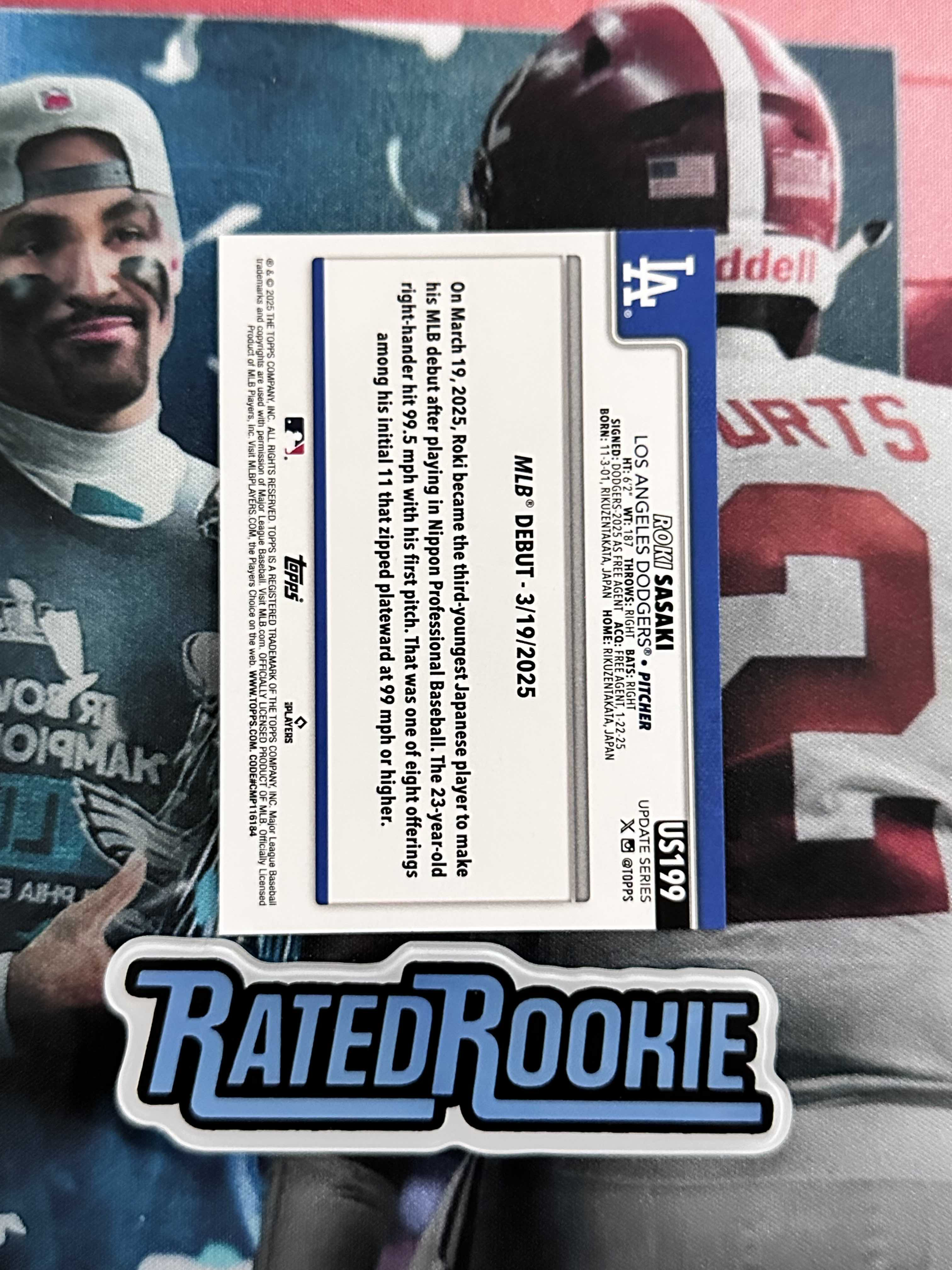 2025 Topps Update Roki Sasaki RC 【RR拍卖-B】佐佐木朗希 道奇新秀冠军投手 顶级新秀 纸卡Base 首秀Debut