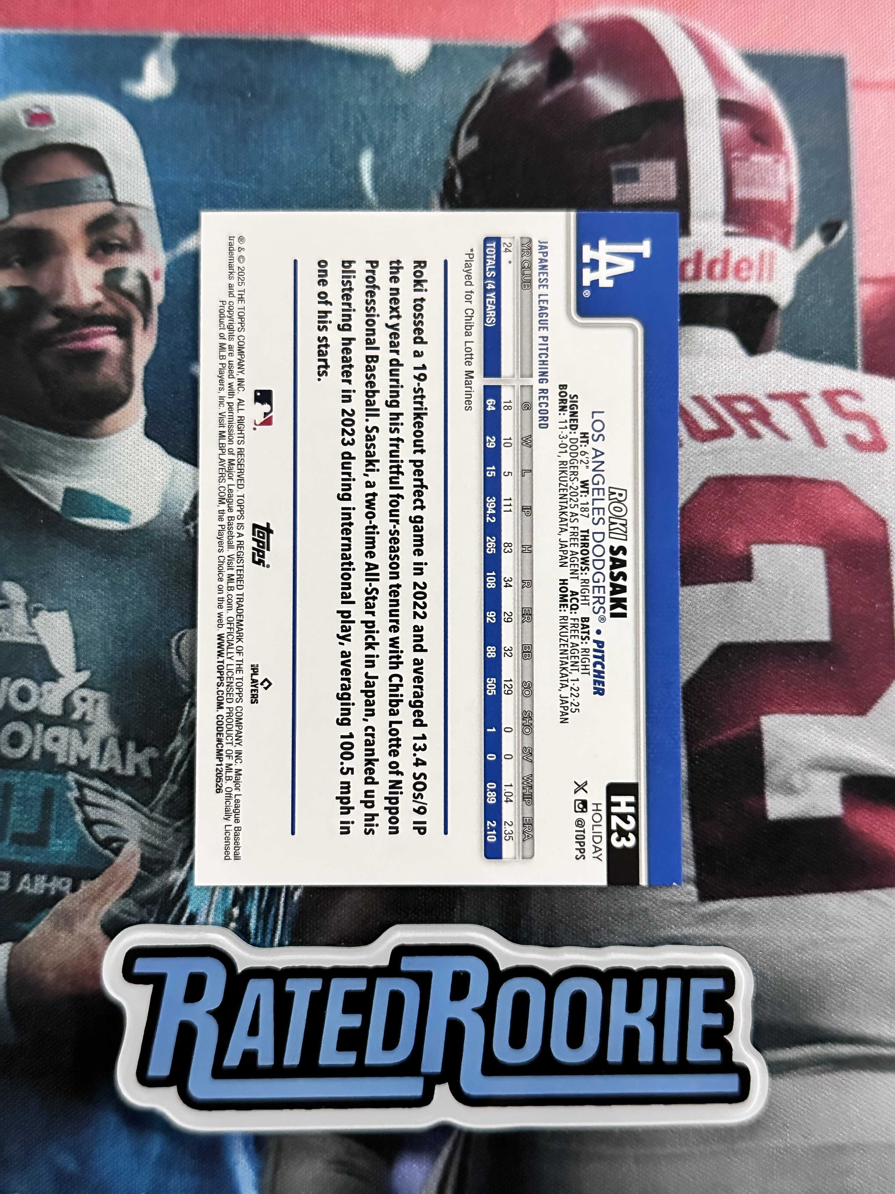 2025 Topps Holiday Roki Sasaki RC 【RR拍卖-B】佐佐木朗希 道奇新秀冠军投手 顶级新秀 假日独占纸卡Base