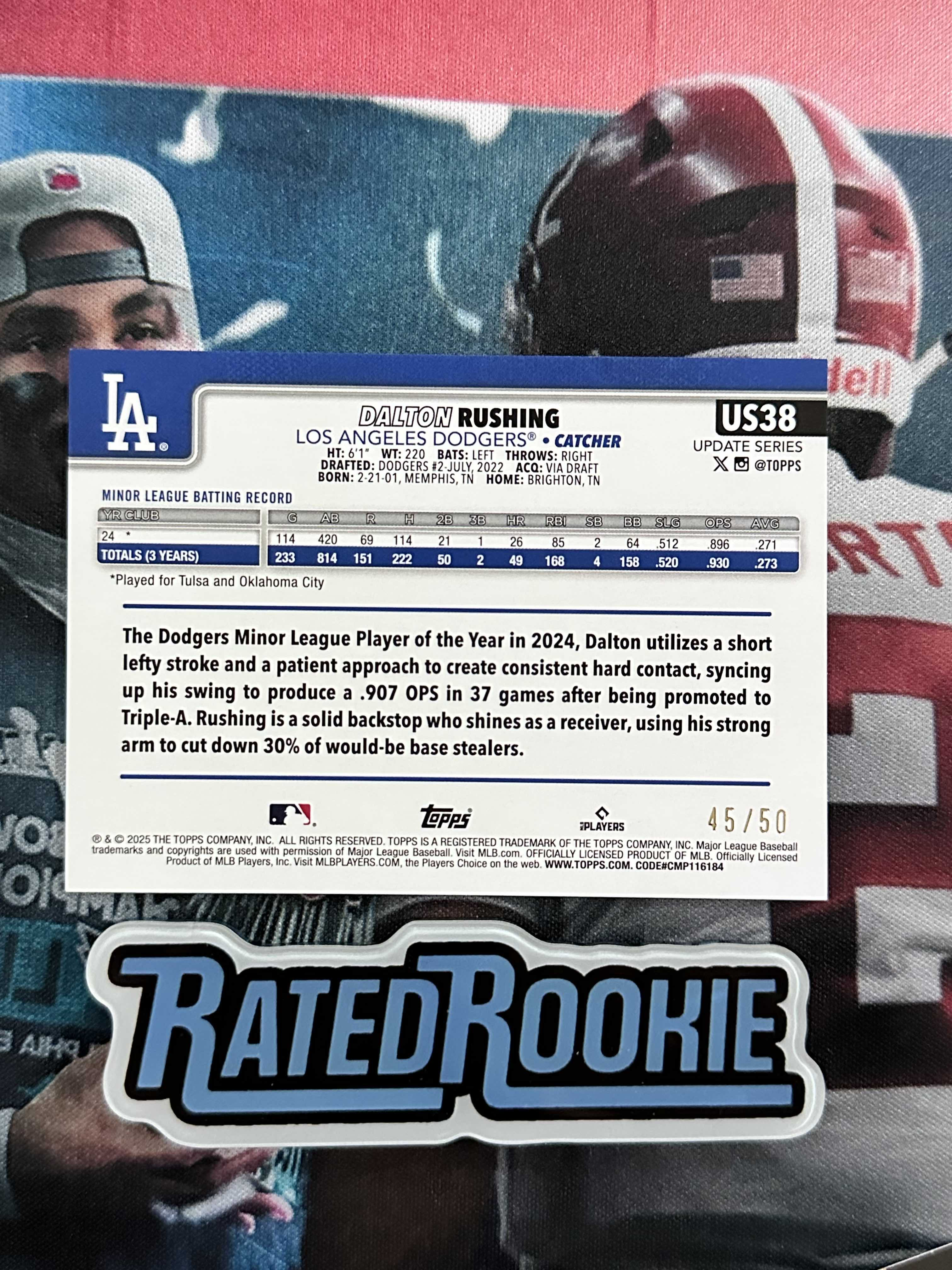 2025 Topps S2 Dalton Rushing RC 【RR拍卖-B】道尔顿拉辛 道奇新秀捕手45/50编金折 SSP万圣节🎃平行 变化版 冠军成员