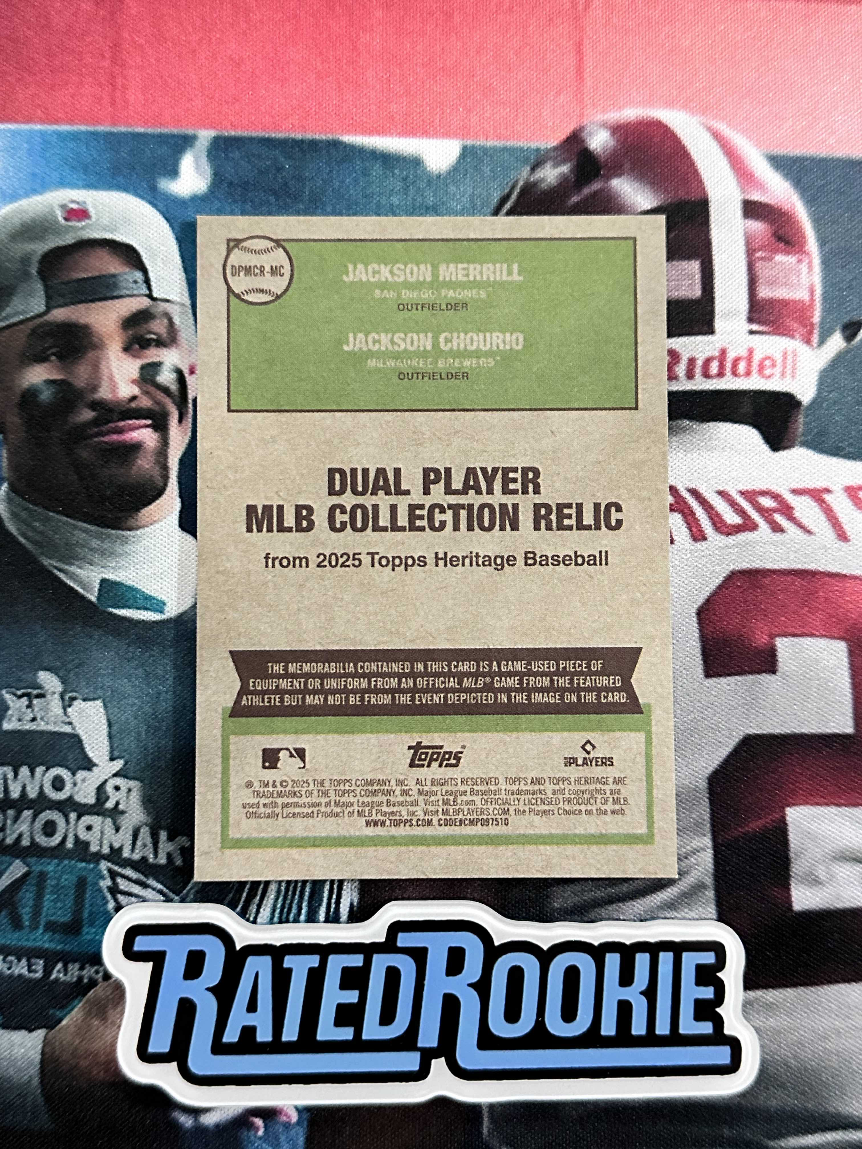 2025 Topps Heritage Jackson Chourio Jackson Merrill 【RR拍卖-B】双人物料 梅丽尔GU球棒切割 楚里奥GU球衣切割 收藏好卡