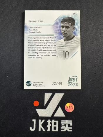 【关于卡品】:①出价即认同品相详情及拍卖规则,概不退换;②签字墨迹及卡片品相均如图,请看清楚再拍,图片很清楚,需要细节图请提前咨询站内信或VX;③折射系列经常会有一道横线是出品印刷问题不属于卡品残次范畴。国宝、IMM、NOIR等厚卡有轻微白边属于正常现象!镜面系列等卡面划痕、印刷自带痕迹或覆膜不平起泡等卡片自身问题均为通行品。老卡有白边白角属于正常卡品。评级卡砖上的划痕和破损以及评级砖内的卡有卡品问题一律不属于品相问题。PZ、OP等各种折射系列表面的轻微划痕为正常卡品。关于以上卡品问题请确认无误再出价,介意者勿拍《艺术家勿扰》,要评级追求金标和10分者请直接购买评级卡。④快递过程中如出现包装破损、暴力变形、遗失等问题,请自行联系顺丰客服处理理赔,提供购买订单记录和物流记录给顺丰即可,如有高价卡有保价需求,请主动联系我们!⑤所有多卡打包lots标均不保卡品,品控和艺术家勿扰,感谢理解!