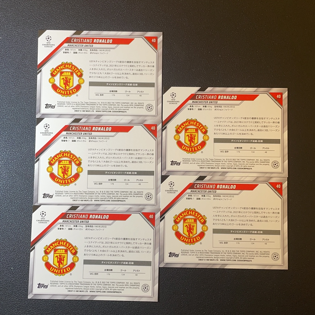 2022 Topps Chrome Cristiano Ronaldo C罗 罗纳尔多 曼联 葡萄牙 皇马 尤文图斯 球王 皇家马德里 日版 第一份 5张打包不保卡品-S00260
