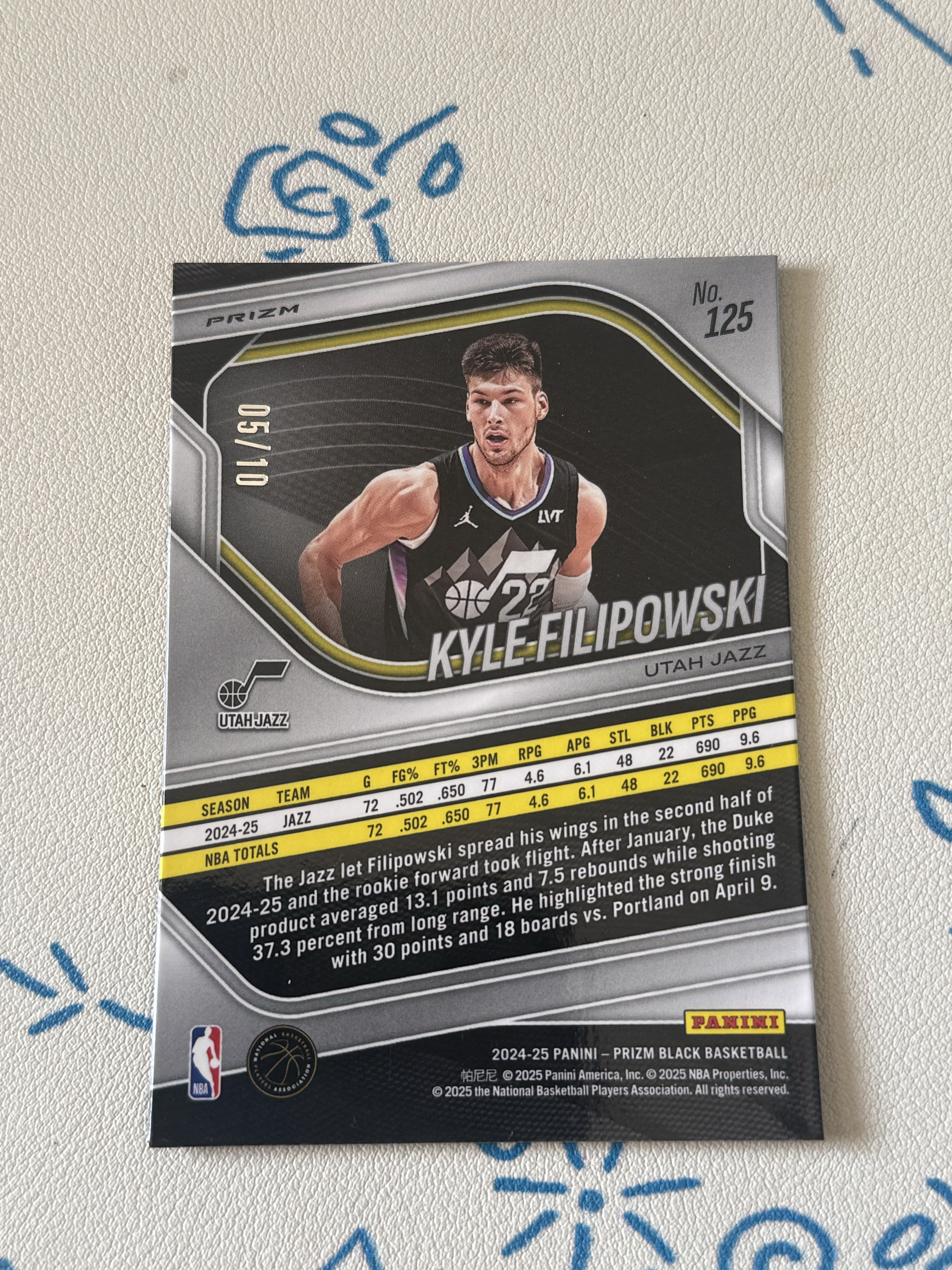 Kyle Filipowski 凯尔 菲利波夫斯基 菲利波普斯基 2024-25 Prizm black PZ RC爵士新秀 05/10编 金波纹金shimmer金折 先行独占 全网首张刚拆的卡品不错