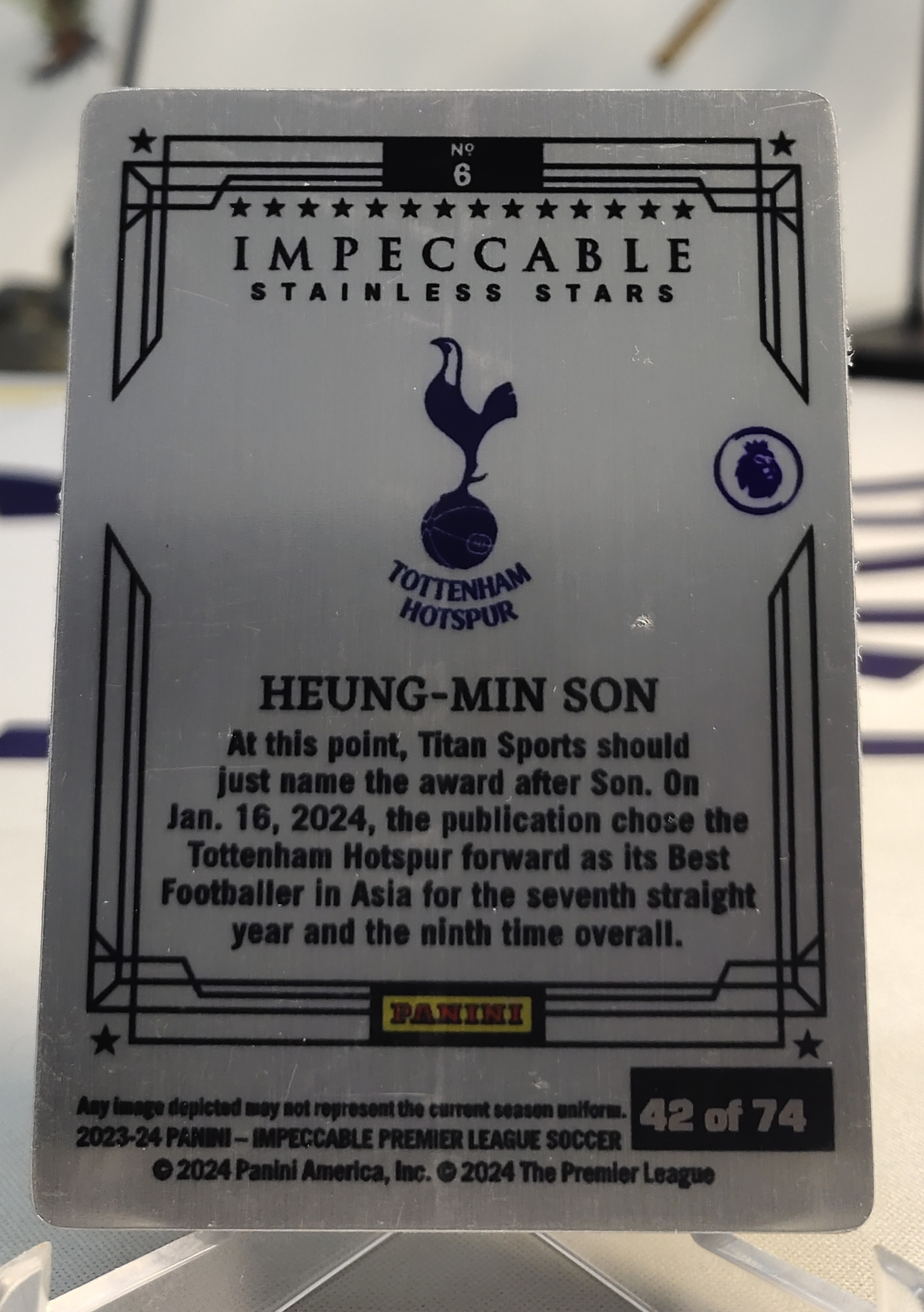 2023-24 Panini Impeccable Heung-Min Son 小真金 孙兴慜 铁板 42/74编 热刺 韩国 亚洲一哥 专收收藏必入 不累计不到付 cwj