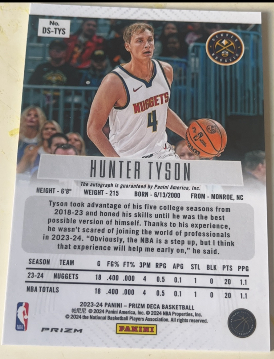 2023-24 Panini Prizm Hunter Tyson RC 掘金 亨特泰森 新秀 复古闪回 银折 签字 卡品如图 收藏必备