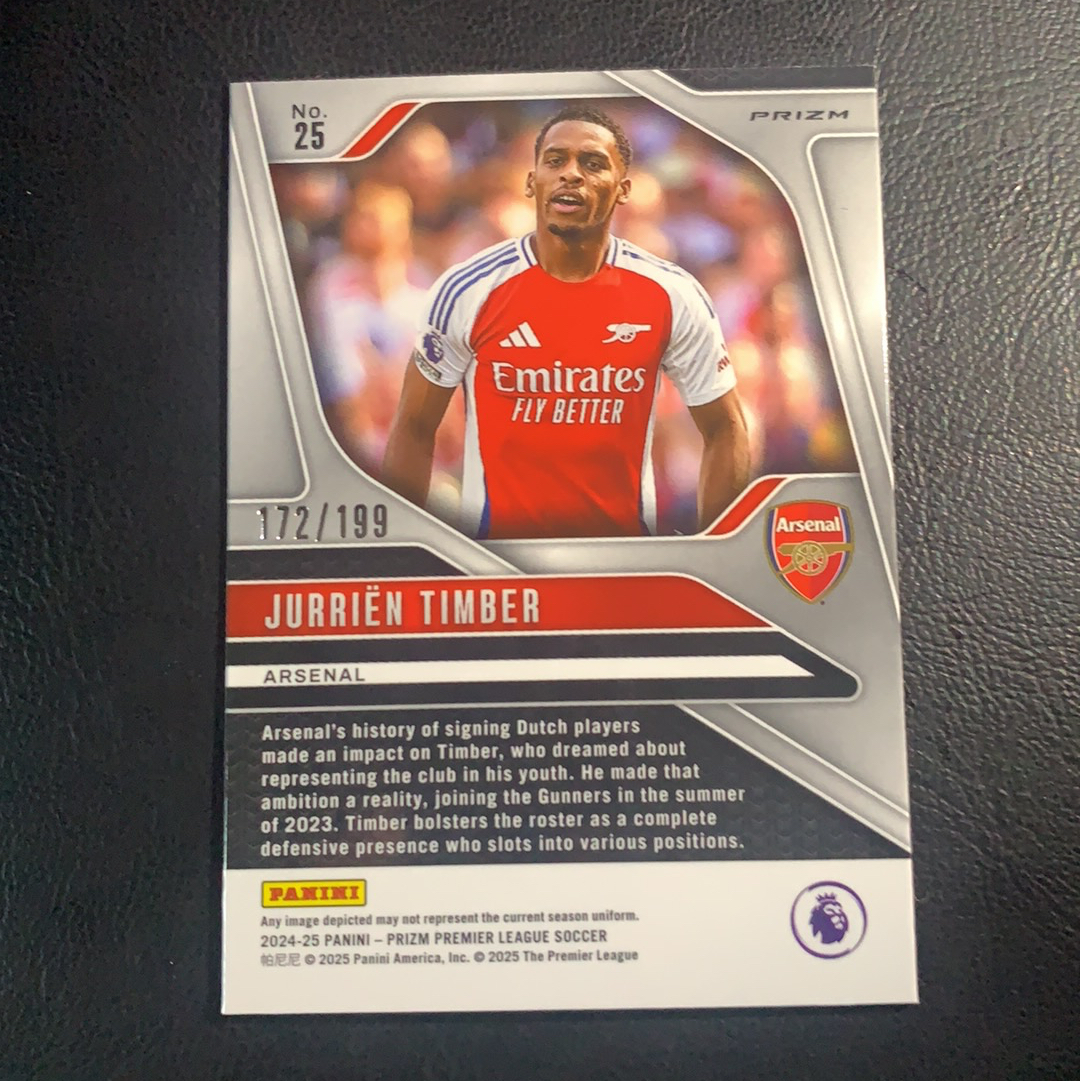 2025 Panini Prizm JURRIEN TIMBER 英超PZ 阿森纳 尤里恩 廷贝尔 199编 红折 卡品如图
