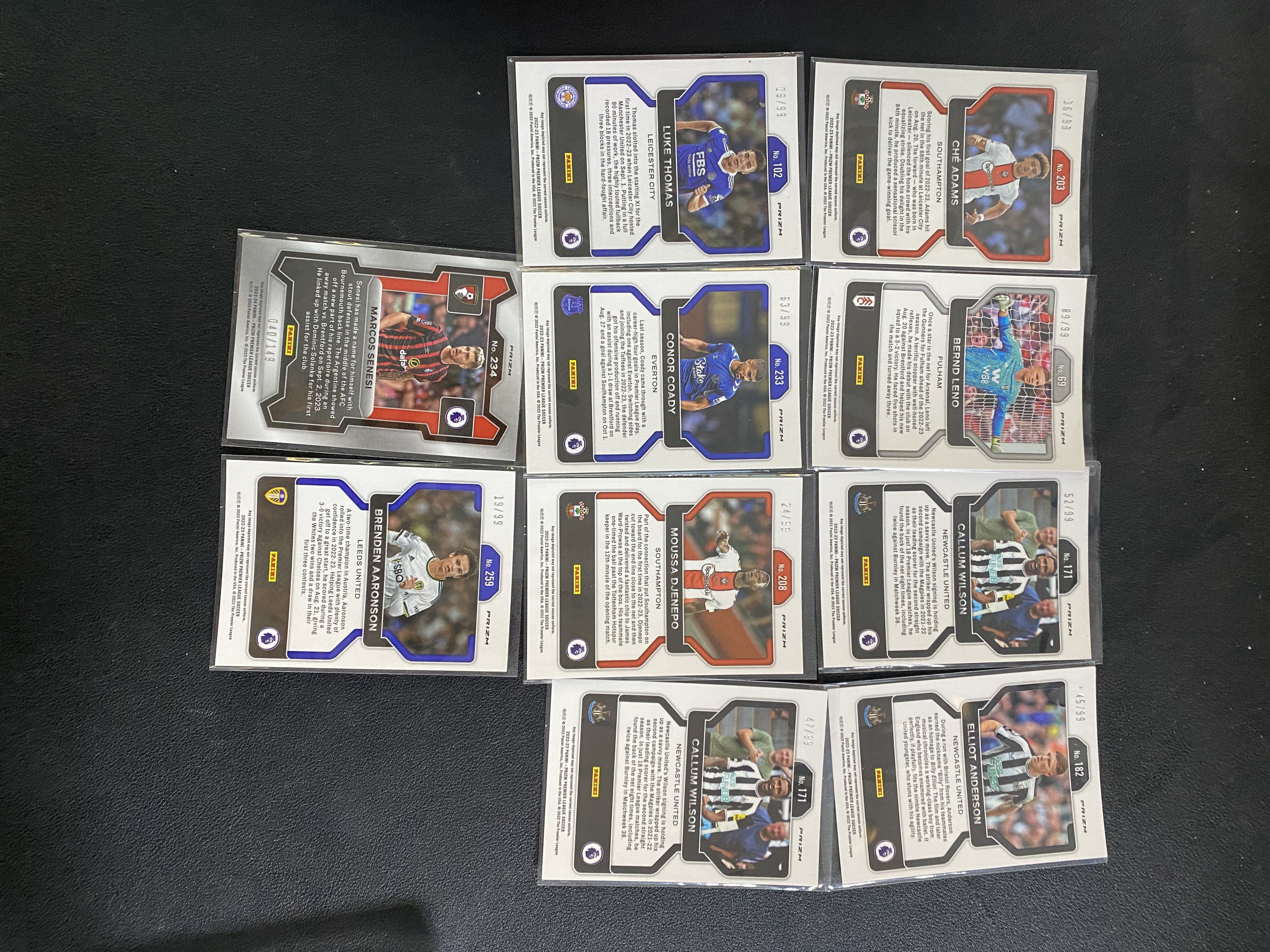 2022-23 Panini Prizm实卡如图 英超PZ 粉泡泡折 99编  贝恩德 莱诺 雷诺   切 亚当斯 塞内西 埃利奥特 安德森 卡勒姆威尔逊 等10张 JH4654 ZK67-陳