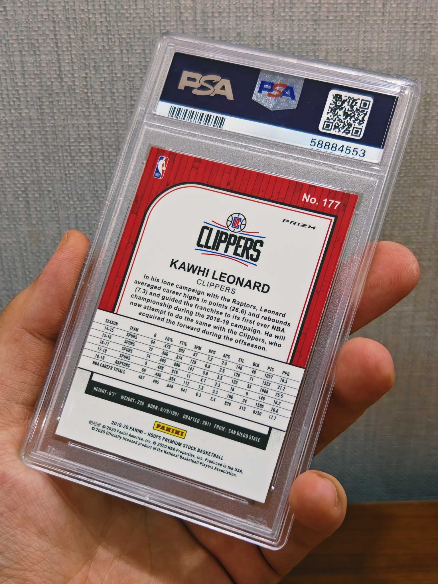 2019-20 Panini NBA Hoops Premium Stock Kawhi Leonard 科怀 小卡 伦纳德 卡哇伊 快船 Prizm 银折 折射 PSA10分 评级卡 #177【小张】