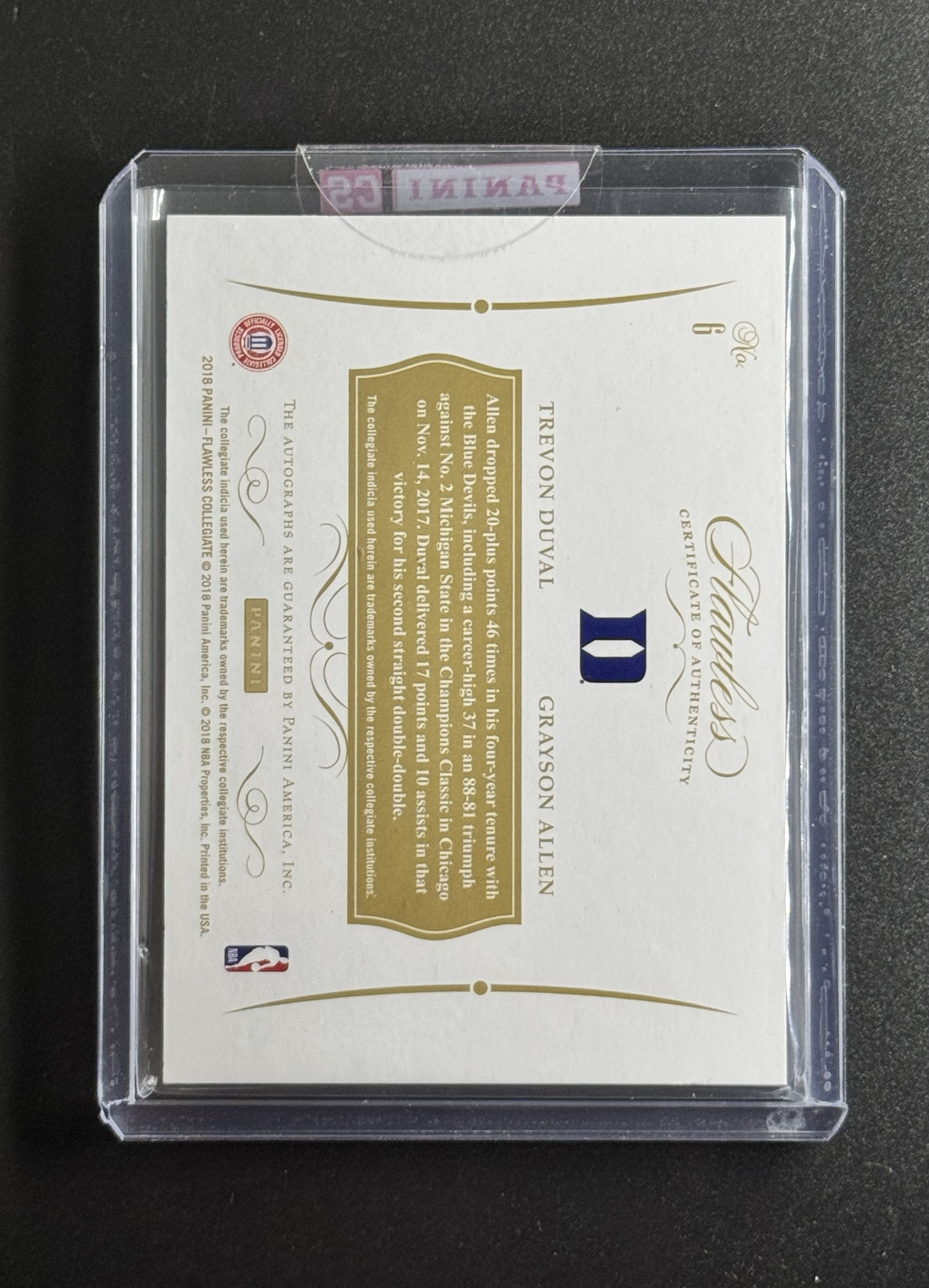 2018 Panini Flawless Grayson Allen 【小花猪代卖】手提 大学 格雷森阿伦 杜瓦尔 20编 红宝石平行 红平行 双人 双签 签字 卡签 原封夹(杨