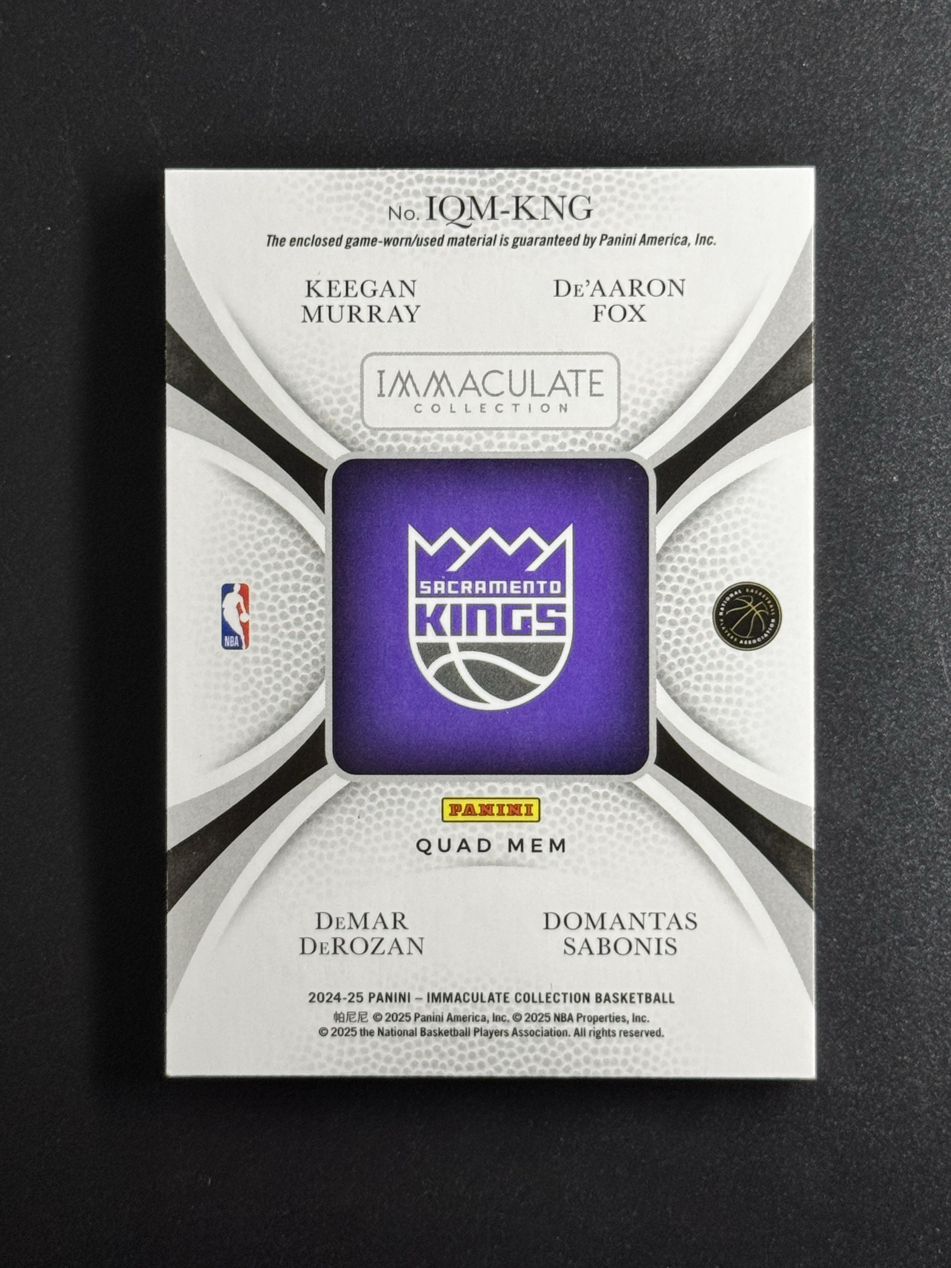 2024-25 Panini Immaculate 爱咪咪 国王 【小花猪代卖】基根 穆雷 达龙 福克斯 德马尔 德罗赞 小萨博尼斯 闪版 99编 四人四窗球衣物料 GU(杨