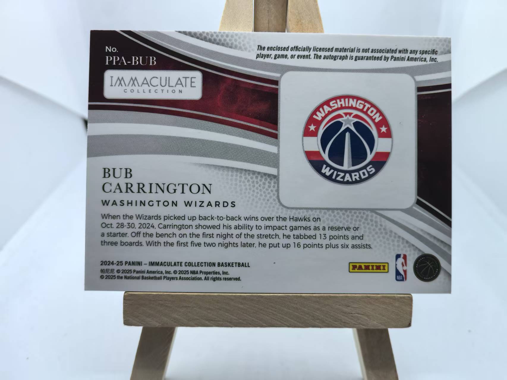 2024-25 Immaculate BUB WIZARDS CARRINGTON RC 奇才 卡林顿 卡灵顿 新秀 /15编 rpa 签字 卡签 大窗物料 PPA