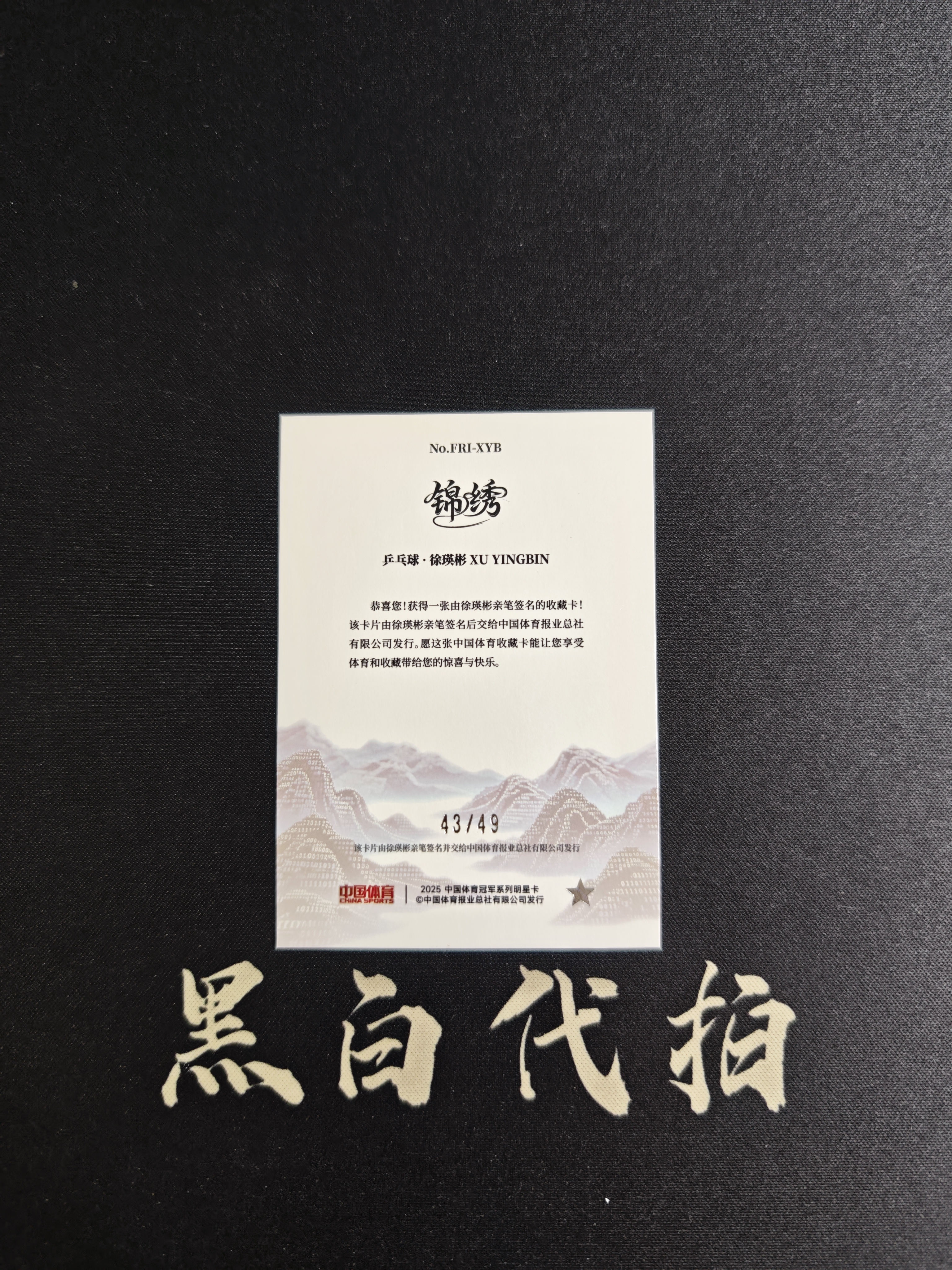 2025 奇卡 QICA 中国体育 徐瑛彬 RC 锦绣 乒乓球 徐瑛彬 新秀 FS 43/49编 签字 墨迹如图 带编 折射 卡品如图【HB07】