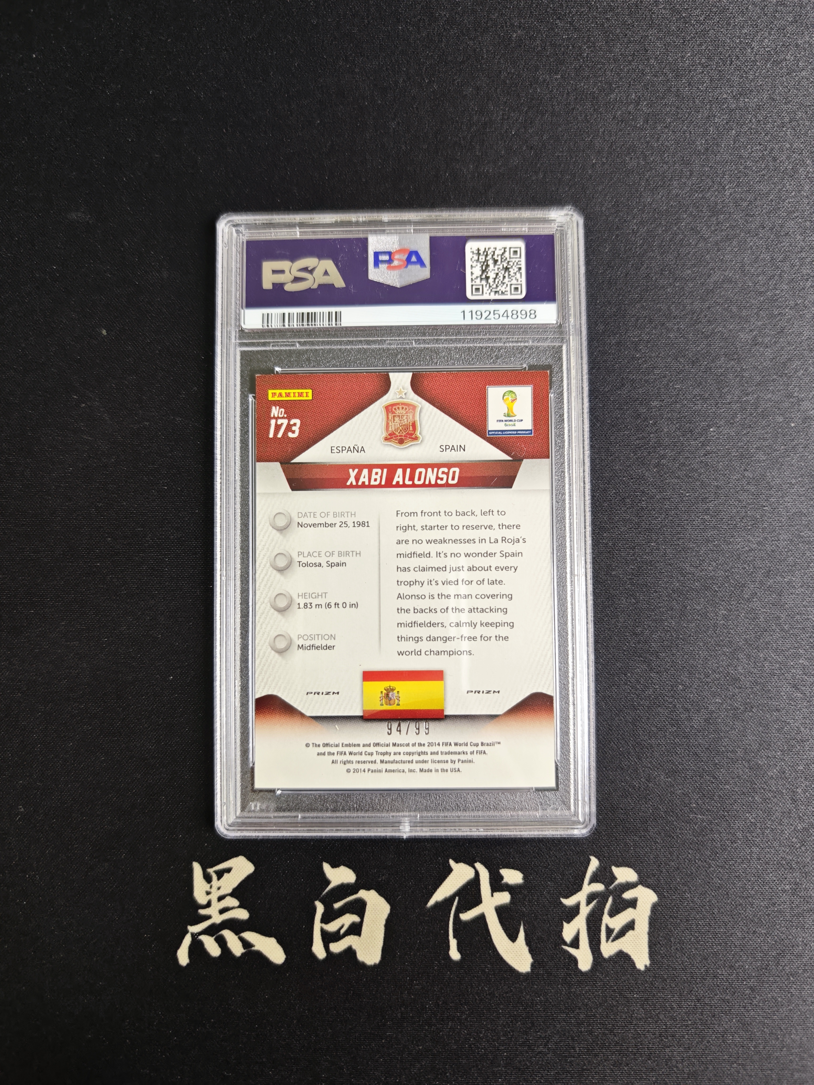 2014 Panini World Cup Prizm Xabi Alonso 世界杯pz 哈维 阿隆索 西班牙中场 传奇巨星 利物浦 皇家马德里 拜仁慕尼黑 94/99编 紫折 PSA9【GP】