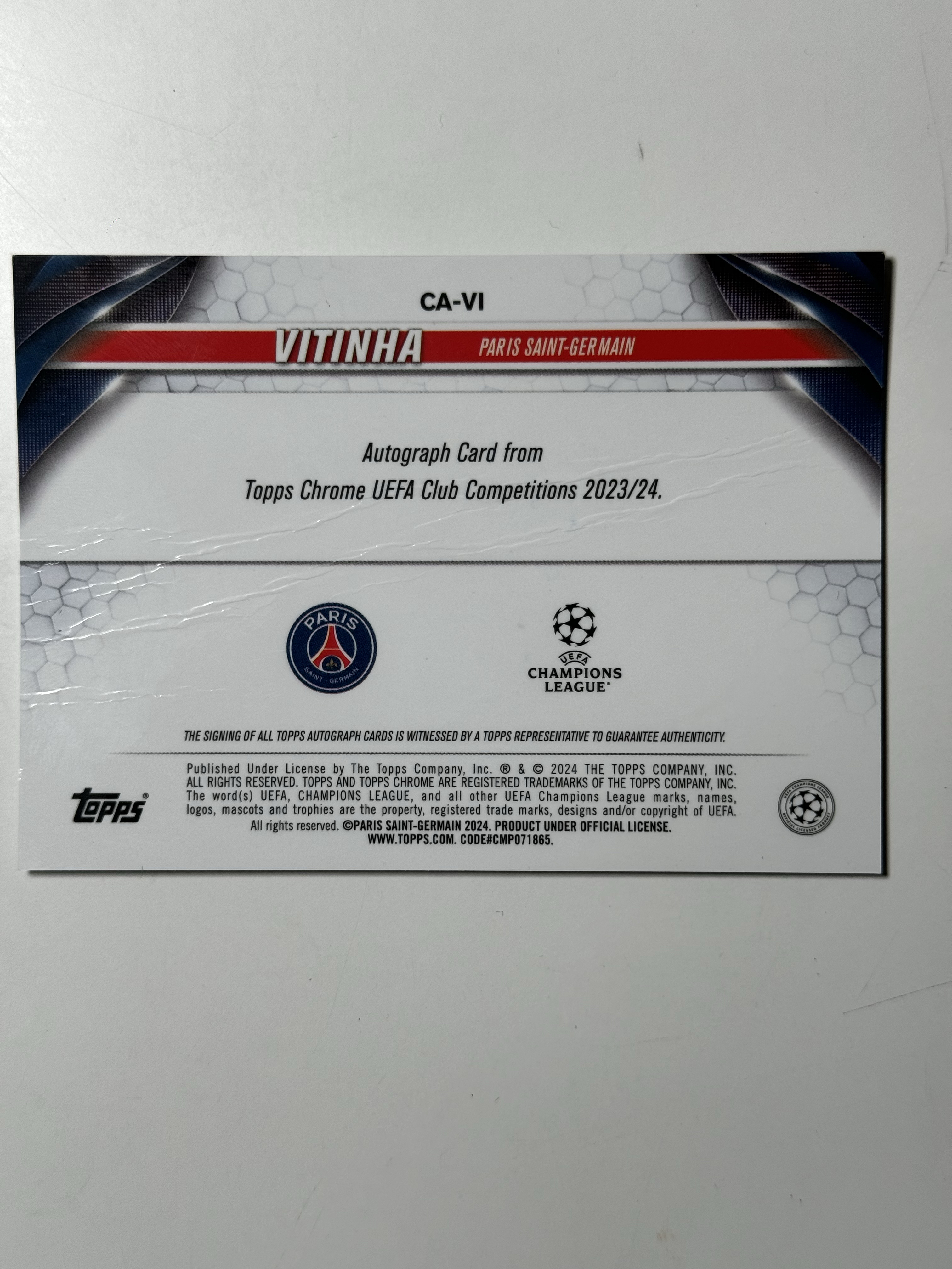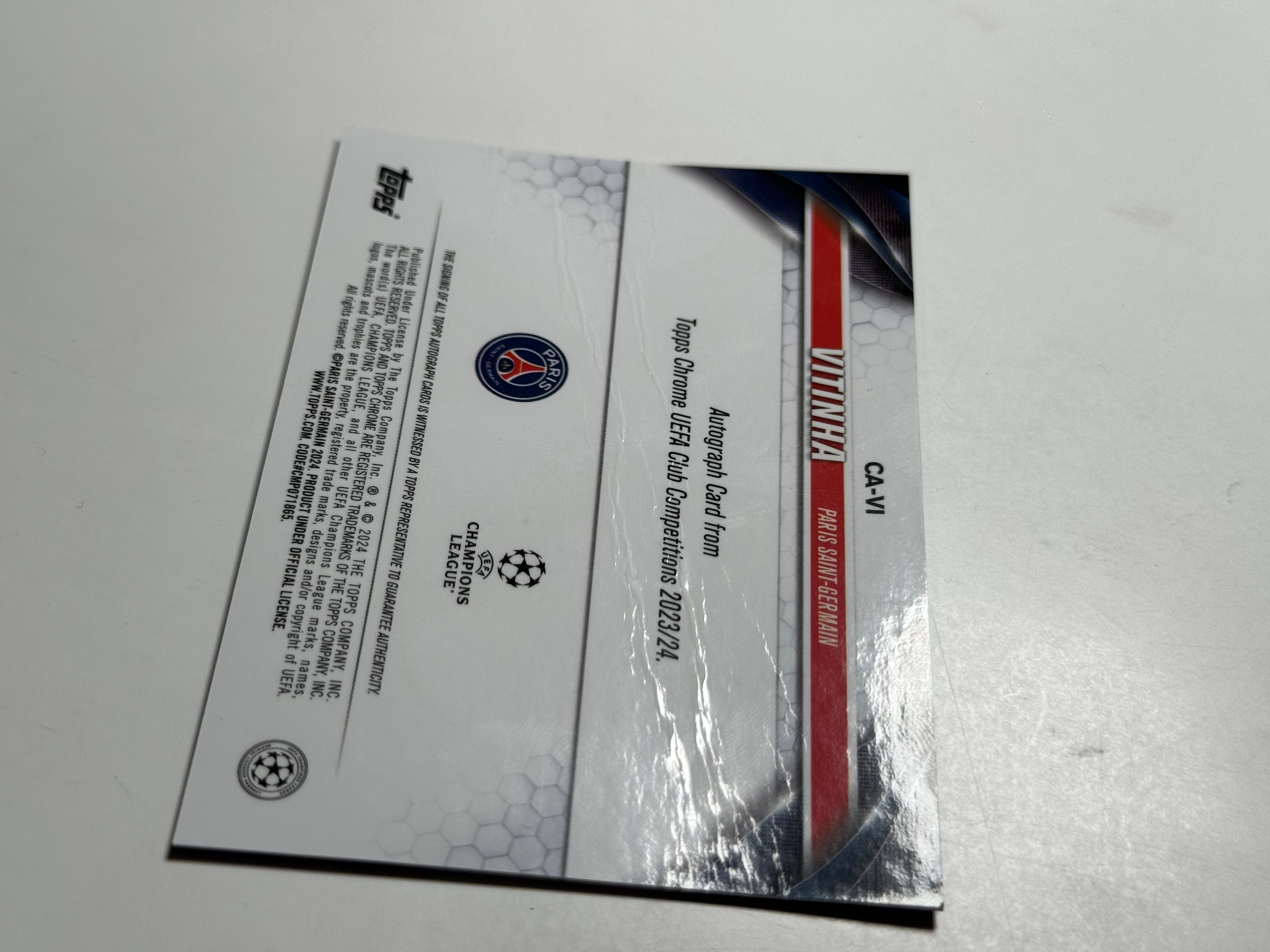 2023-24 Topps Chrome vitinha 维蒂尼亚 葡萄牙 巴黎圣日耳曼 欧冠 TC 签字 签名 银折 折射 C罗杜埃登贝莱内维斯队友 卡品如图(有明显折痕)