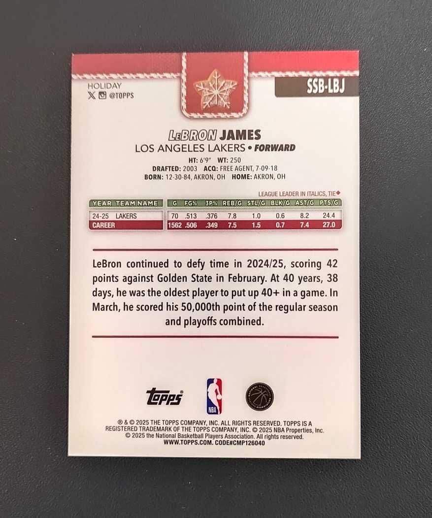 2025-26 Topps holiday LeBron James 勒布朗 詹姆斯 湖人 雪花背 圣诞节 假日 普卡 Base 大比例