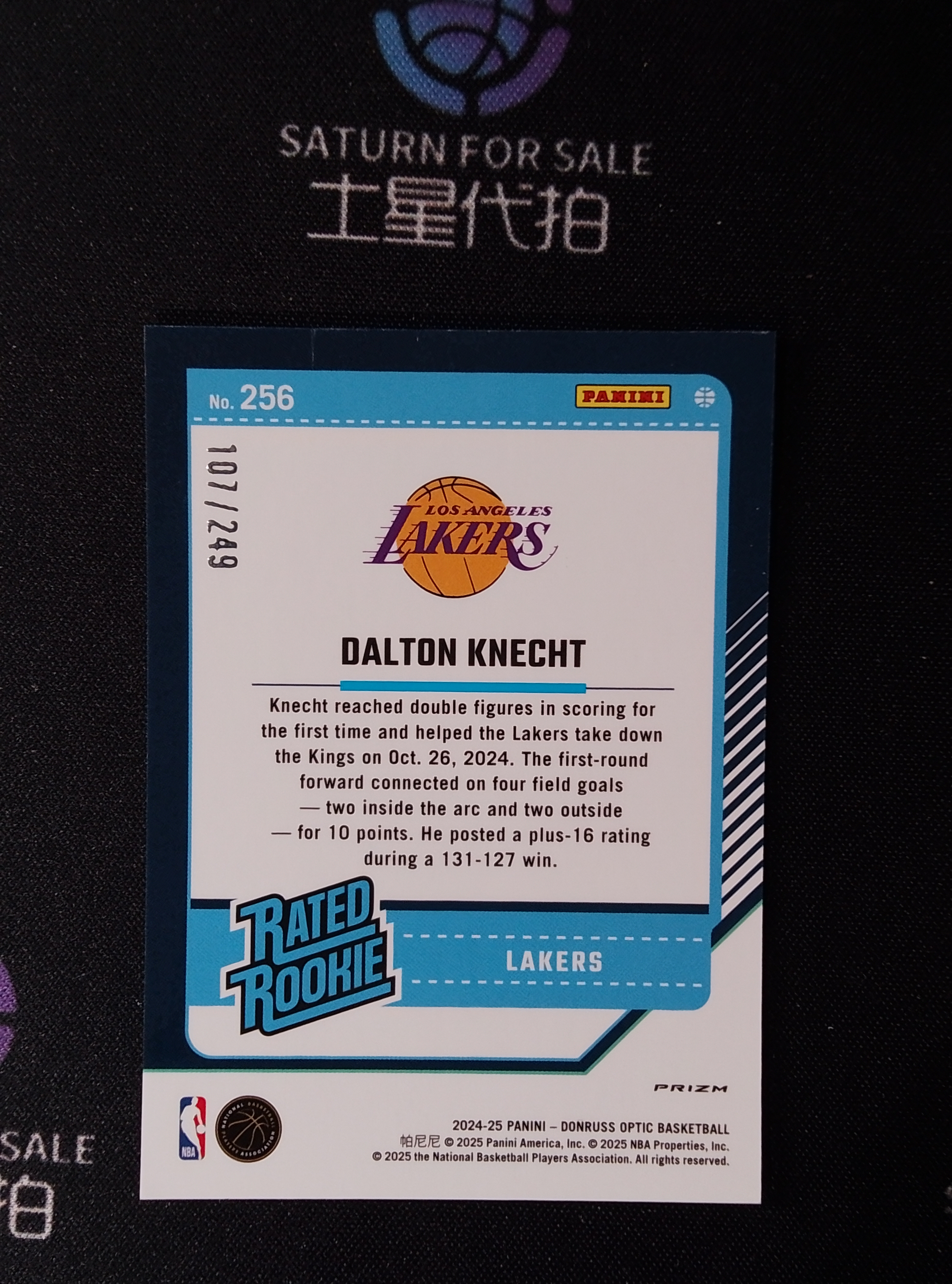 4.品相说明:(1)木盒、国宝、IMM、手提、NOIR、小书、金书、小真金、黑曜石、Encased等厚卡或老卡老系列均有正常白边白角,Prizm、Optic、Select、Flux、Chrome等折射系列薄卡有小划痕、小印记或非人为卡片制作印刷的问题属于正常通行品,镜面系列有小划痕属于通行品相。所有卡片不保证金标,要评级追求金标者请直接购买金标,请有强迫症、品相控的卡迷绕道和谨慎出价;(2)原封卡有明显大瑕疵会标出;(3)所有拍品均为实图专业设备拍摄,参与竞价视为接受卡片的品相,不作特殊说明的都是通行品,如有明显大瑕疵会拍照说明;(4)由于拍摄卡片的角度以及光线的限制,若您对卡片品相仍存在疑问,可在【截标前】向卖家咨询提供更多细节图。
