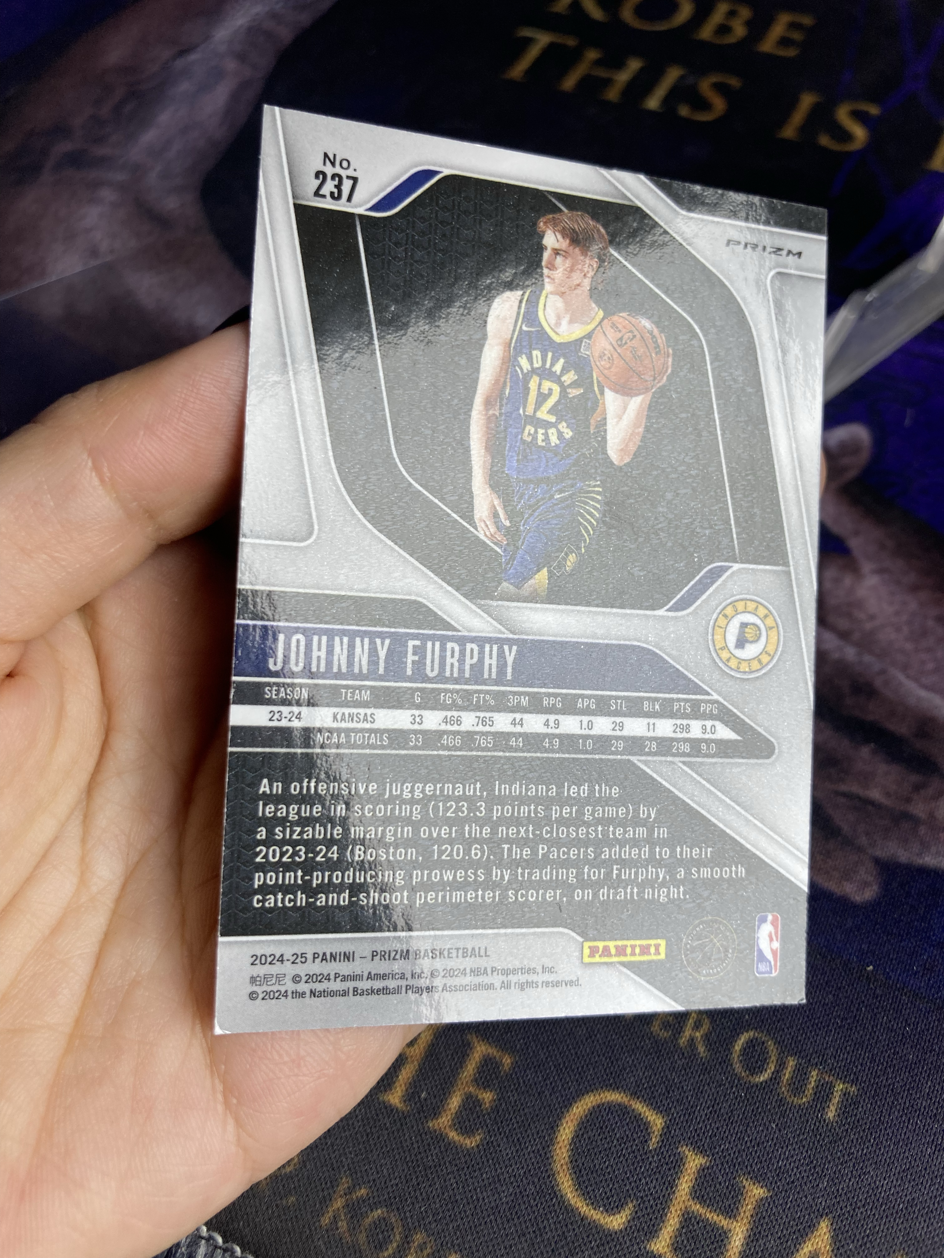 2024-25 Panini Prizm Johnny Furphy RC 【星卡优转】pz系列 步行者 新秀RC 约翰尼 弗菲 正银折 专收必备 微瑕如图 昊