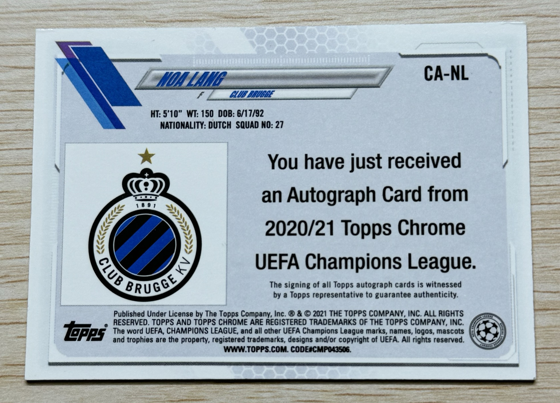 2021 Topps Chrome Noa Lang RC 欧战TC 诺阿朗 正tc 正RC 新秀 布鲁日 荷兰🇳🇱 签字 银折 折射 已入选国家队 完美墨迹 投资必备 凑套必备 不保卡品