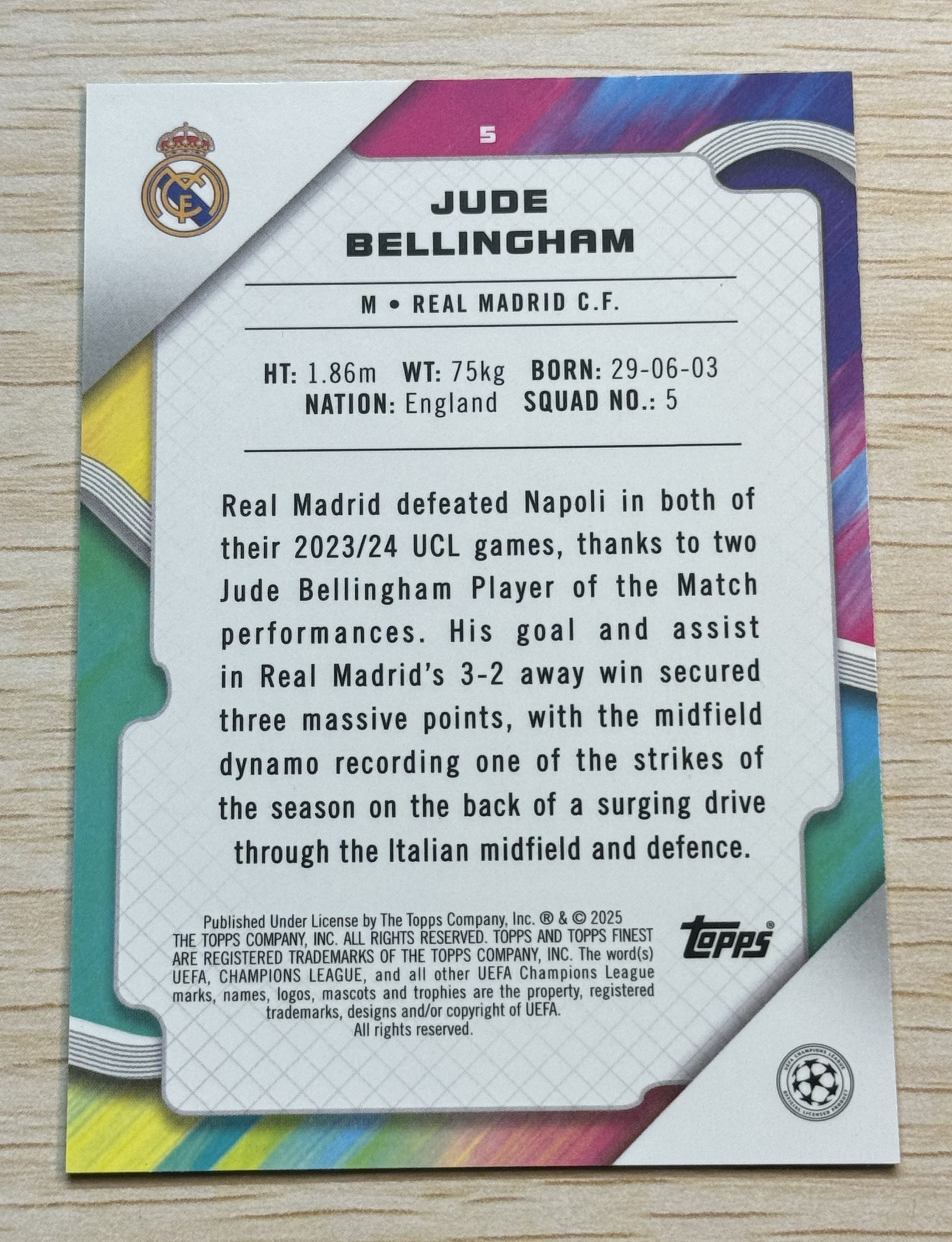 2024-25 topps finest JUDE BELLINGHAM 贝林厄姆 皇马 英格兰🏴󠁧󠁢󠁥󠁮󠁧󠁿 124/125编 连号编 粉龙鳞折 折射 投资必备 凑套必备 不保卡品