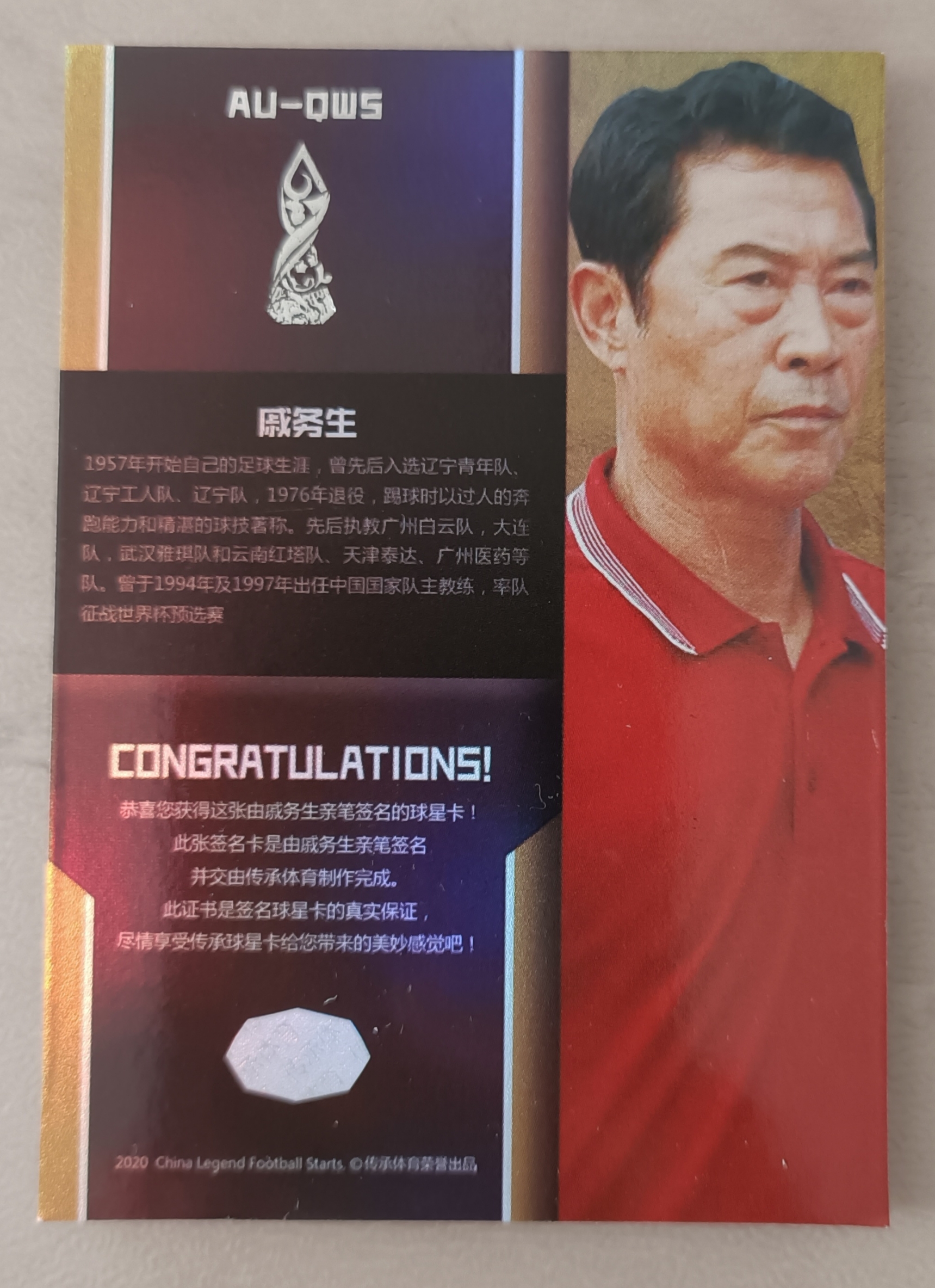 【lolww】谢嘉蒙 2020 传承体育 中国男足传奇人物 戚务生 金折 折射签字 卡签