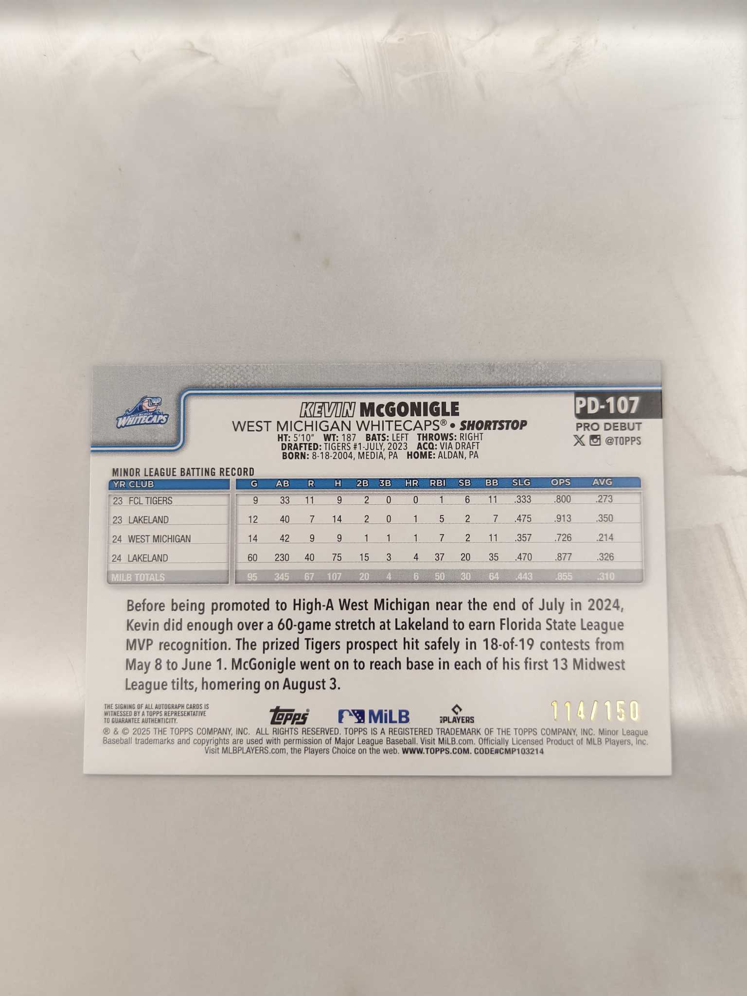 2025 Topps bowman chrome Kevin McGONIGLE RC MLB 新秀 底特律老虎超级新秀大物 凯文 麦格尼格150编 签字 蓝折 专收必备