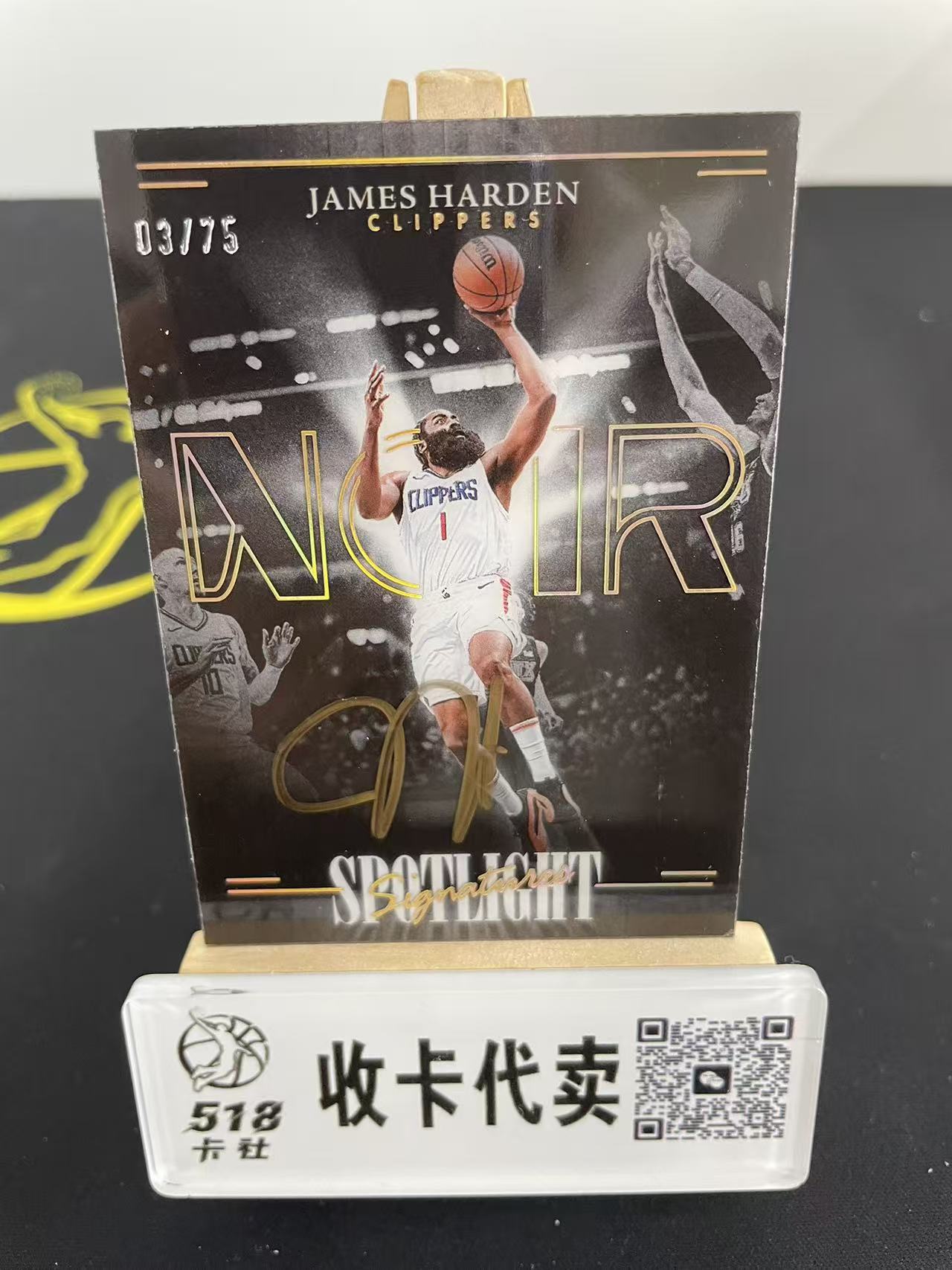 【518代卖提前预付超85%】2023-24 Panini Noir James Harden 哈登 聚光灯spotlight 签字 金签  75编 签字 卡签 卡签 hc