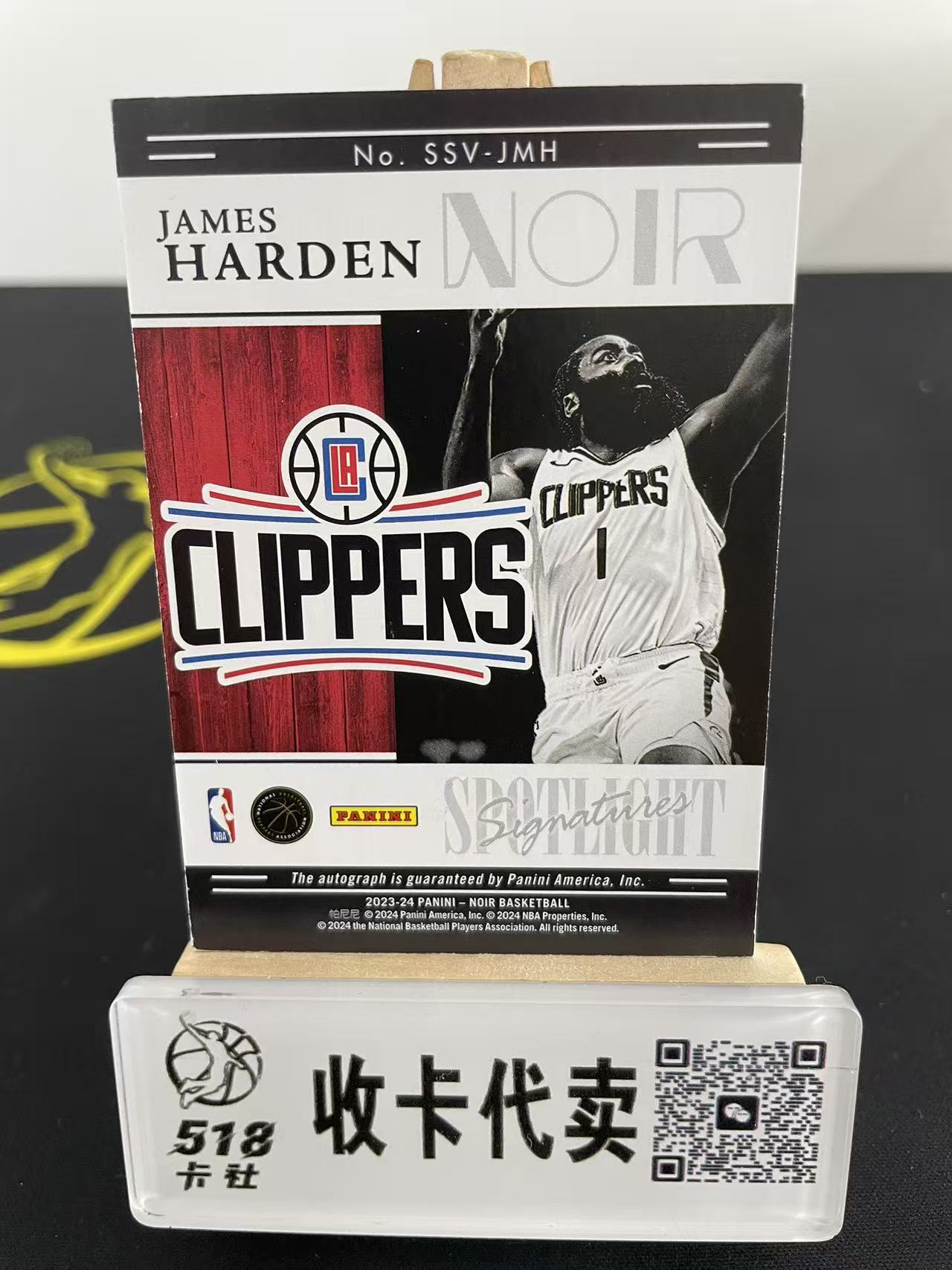 【518代卖提前预付超85%】2023-24 Panini Noir James Harden 哈登 聚光灯spotlight 签字 金签 75编 签字 卡签 卡签 hc