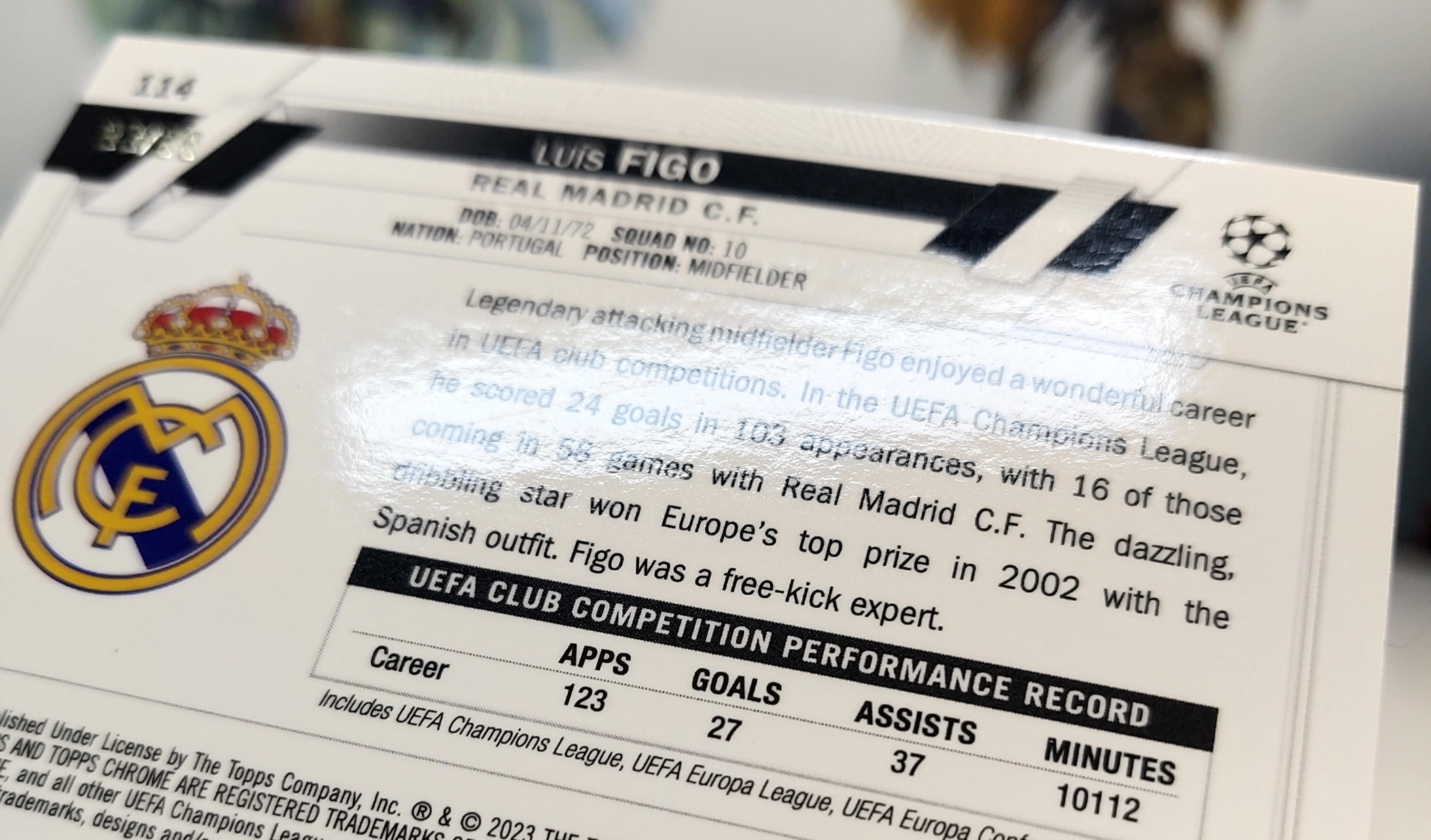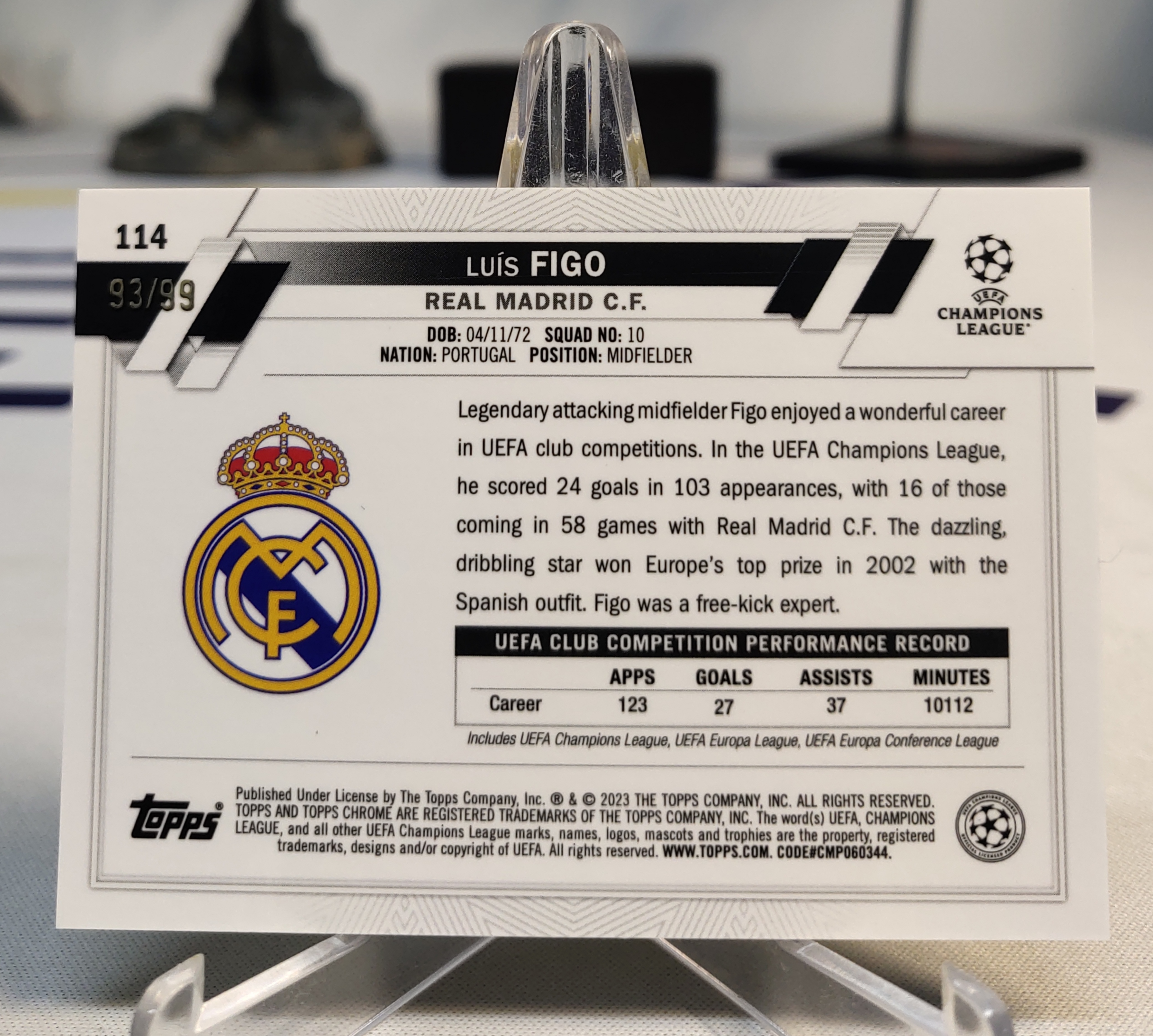 2022-23 Topps Chrome ‌Luis Figo 欧冠TC 蓝宝石 路易斯 菲戈 变化版 大比例 93/99编 黄碎冰折 皇马 巴萨 国米 葡萄牙 专收收藏必备 品相见图 cwj