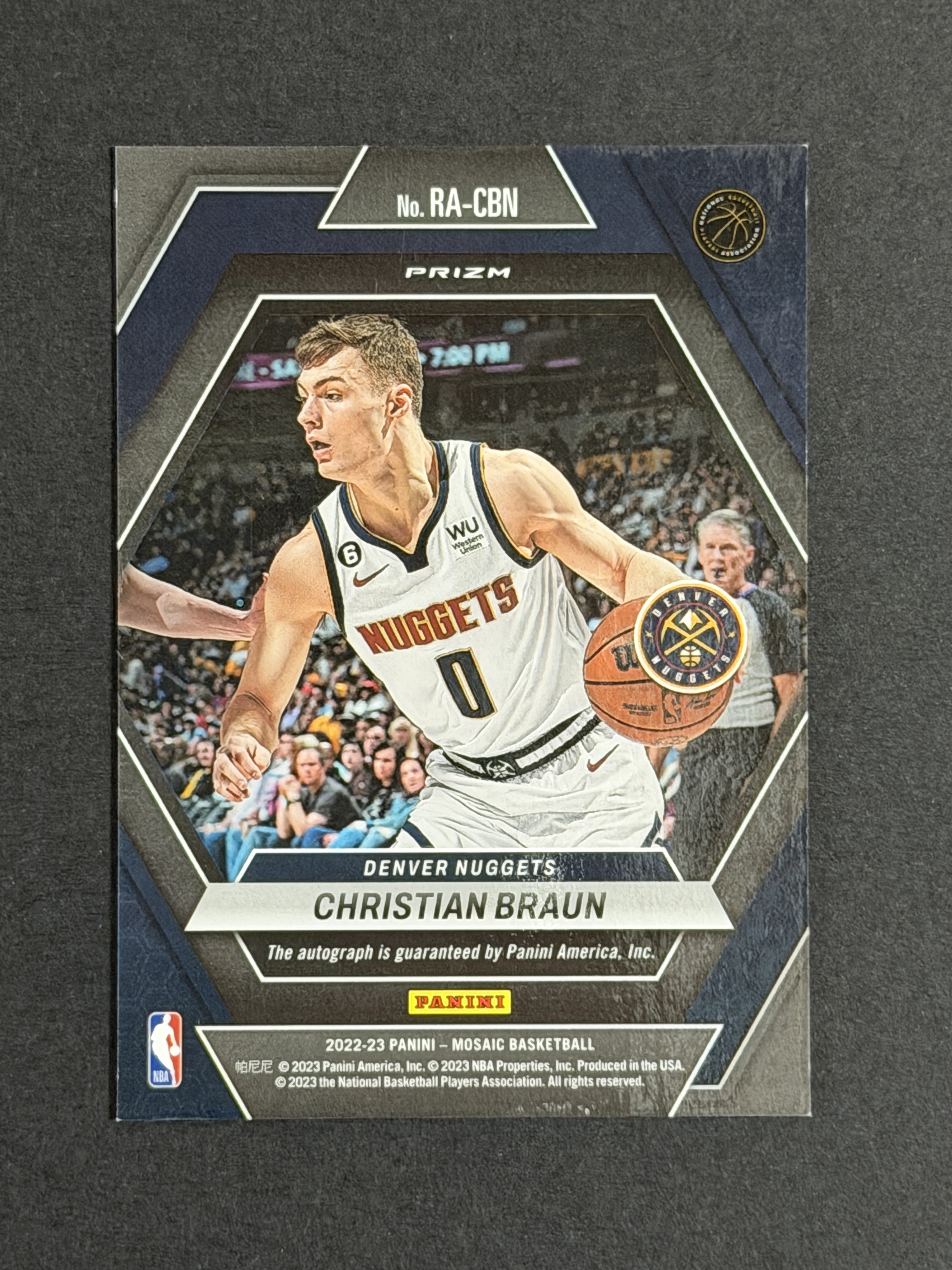 2022-23 Panini Mosaic Christian Braun RC 【圣兰拍卖 免手续费】掘金 新秀 克里斯蒂 布劳恩 签字 新秀签 红金马赛克折 折射 卡品如图/怪语