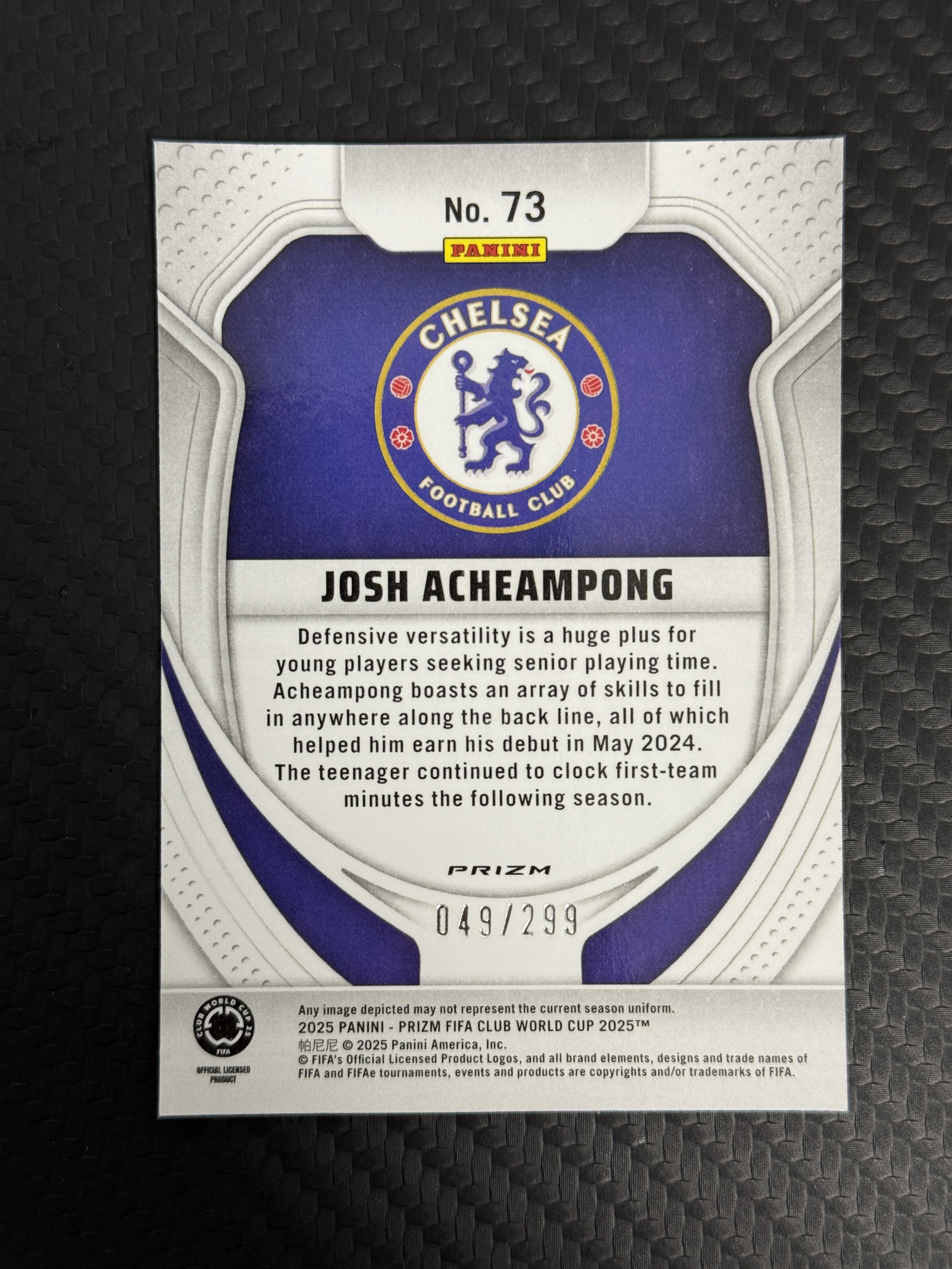 2025 Panini Prizm FIFA Club World Cup 世俱杯 Josh Acheampong 阿昌庞 阿彻姆彭 切尔西 新秀RC 英超 299编 红脉冲折 卡品如图 叉叉