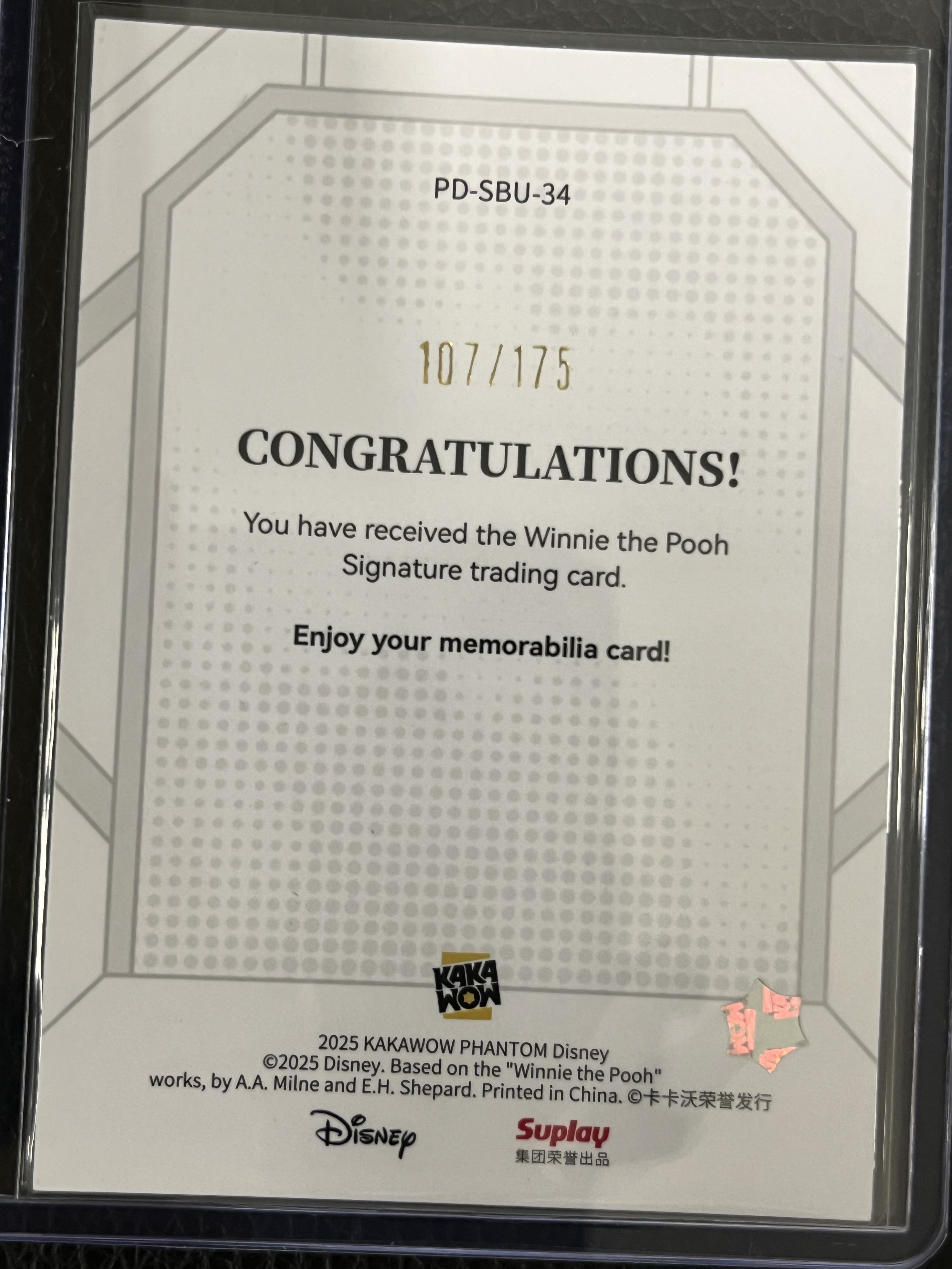 卡卡沃 2025 KAKAWOW PHANTOM 迪士尼系列收藏卡 单签-蓝 小宝NM71 107/175编 小熊维尼 Winnie the Pooh