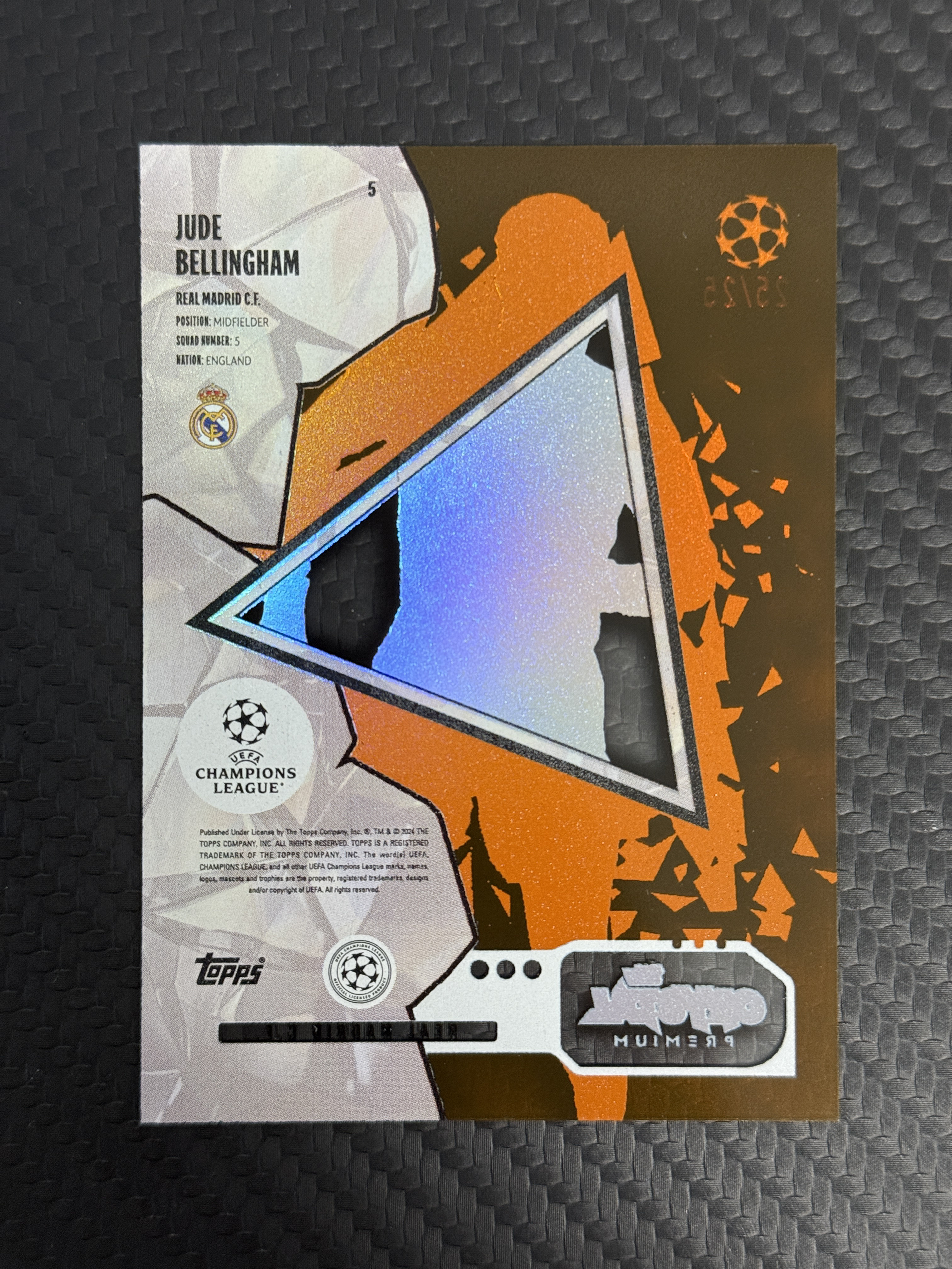 2024-25 Topps Crystal Jude Bellingham 【包来拍卖】贝林厄姆 金童 英格兰 多特蒙德 皇马 皇家马德里 橙折 尾编 25/25编 水晶 胶片 欧冠 卡品如图 吴总