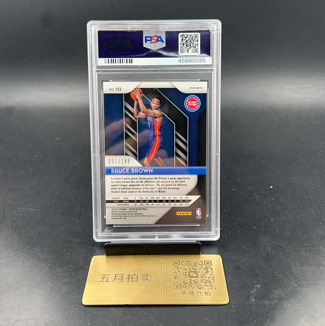 2018 Panini Prizm Bruce Brown RC 【五月拍卖 顺丰空运】布鲁斯布朗 新秀 149编 紫碎冰折 折射卡 PZ系列 冠军拼图 季后赛关键先生 评级卡 PSA9 红顶帽r2