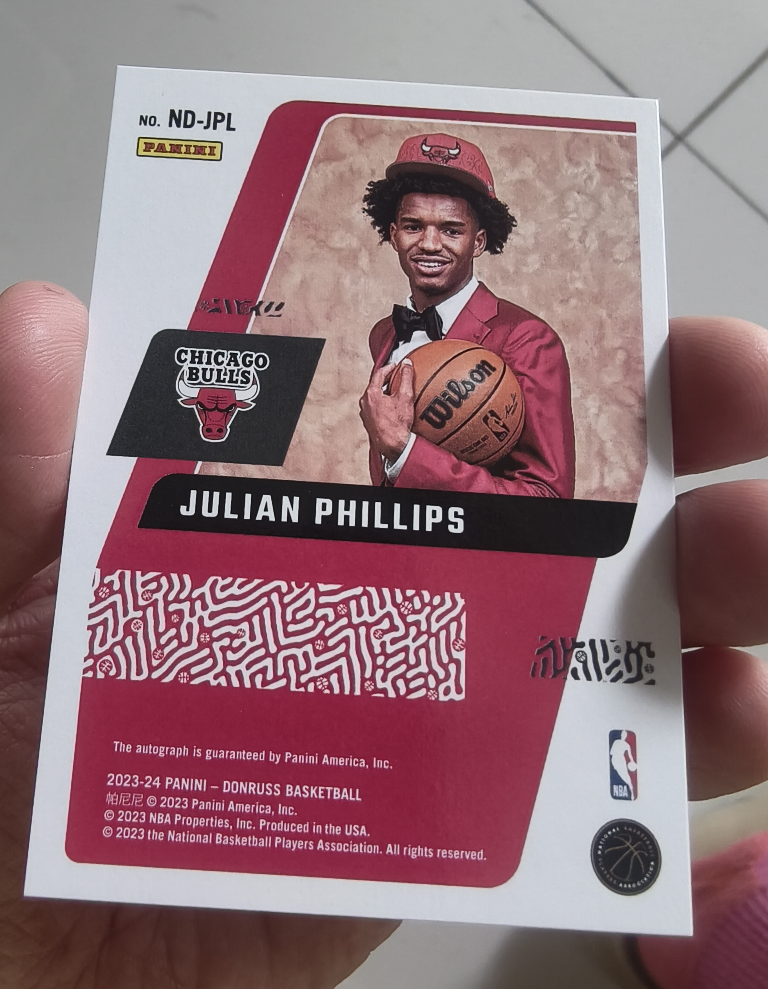 2023-24 Panini Donruss Julian Phillips RC 菲利普斯 公牛 杜蕾斯卡签新秀 明日 第一版签字 卡品极好如图 签字墨迹完美