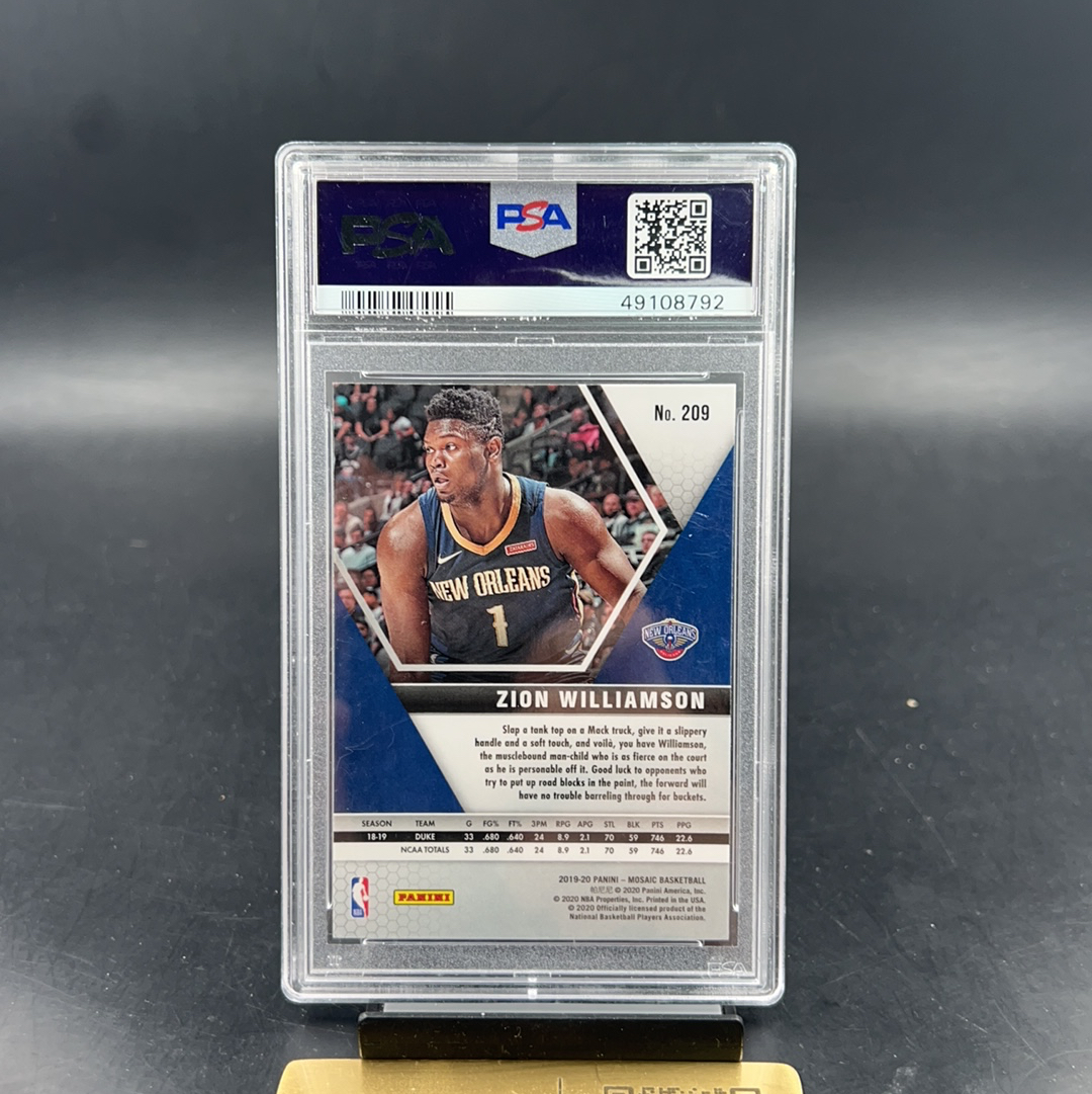 2019 Panini Mosaic Zion Williamson RC 【五月拍卖 顺丰空运】马赛克 锡安 威廉姆斯 胖虎 base 评级 #209 PSA9 微瑕如图 红顶帽3 r4