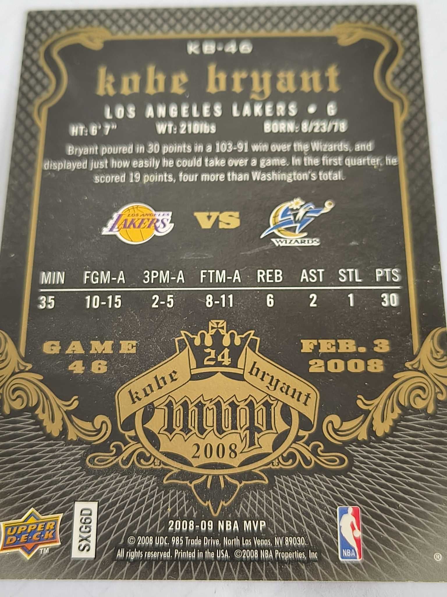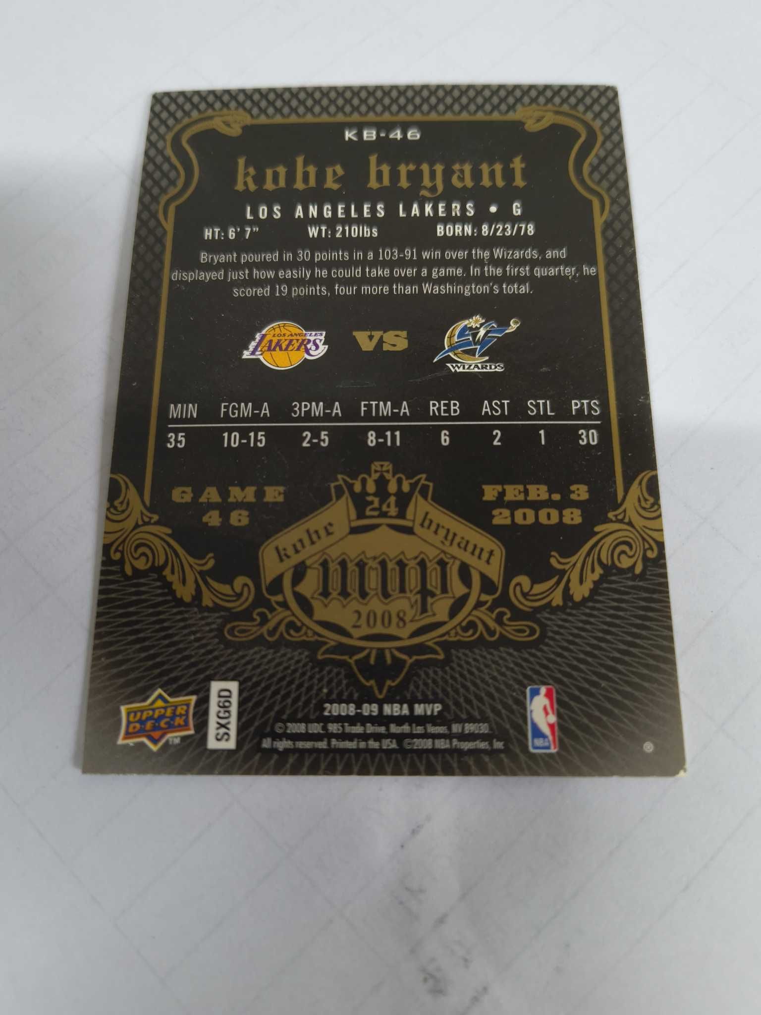 2008 Upper Deck MVP Kobe Bryant 科比 mvp 湖人队 有胶痕 角顿 卡片如图