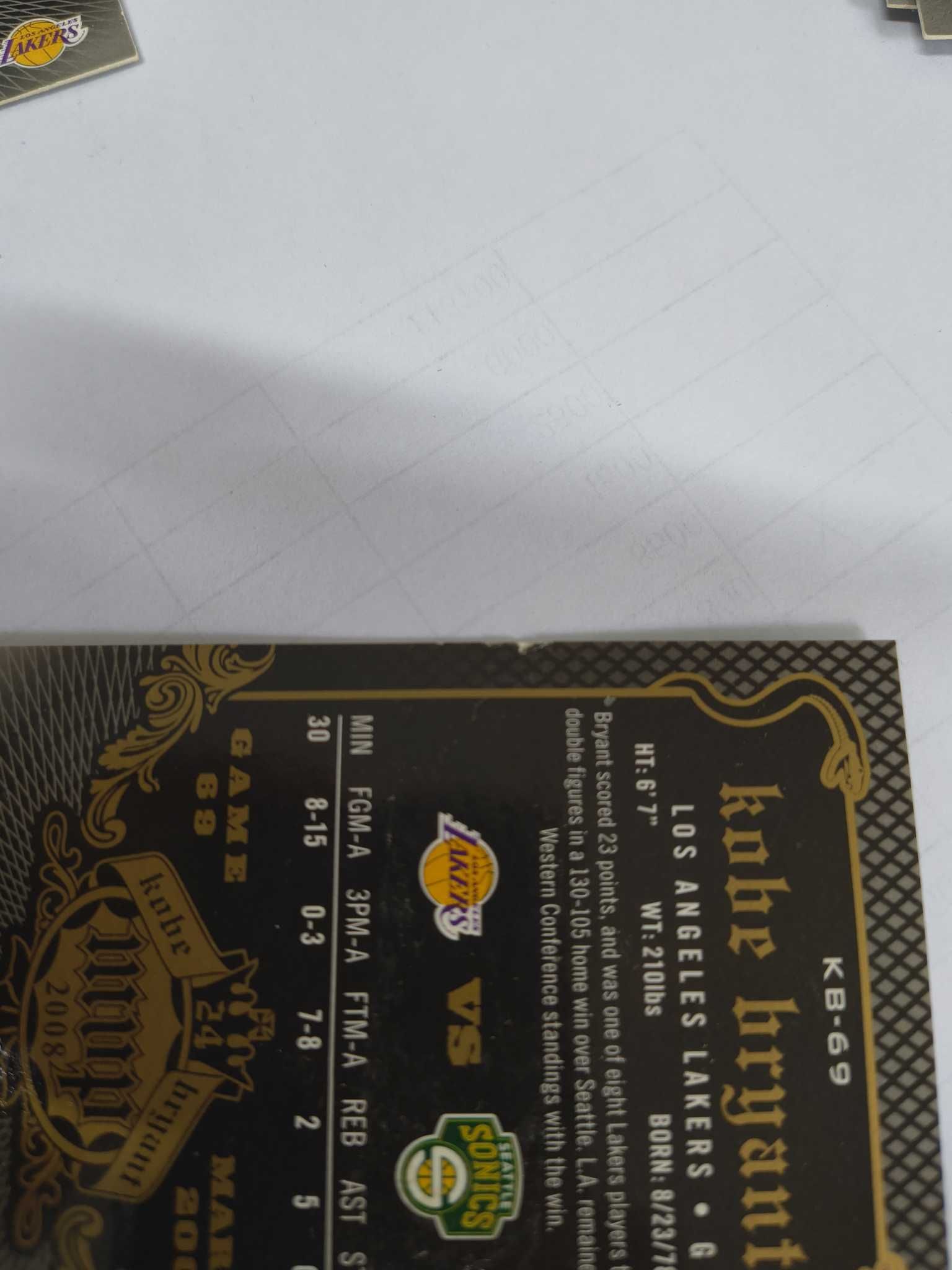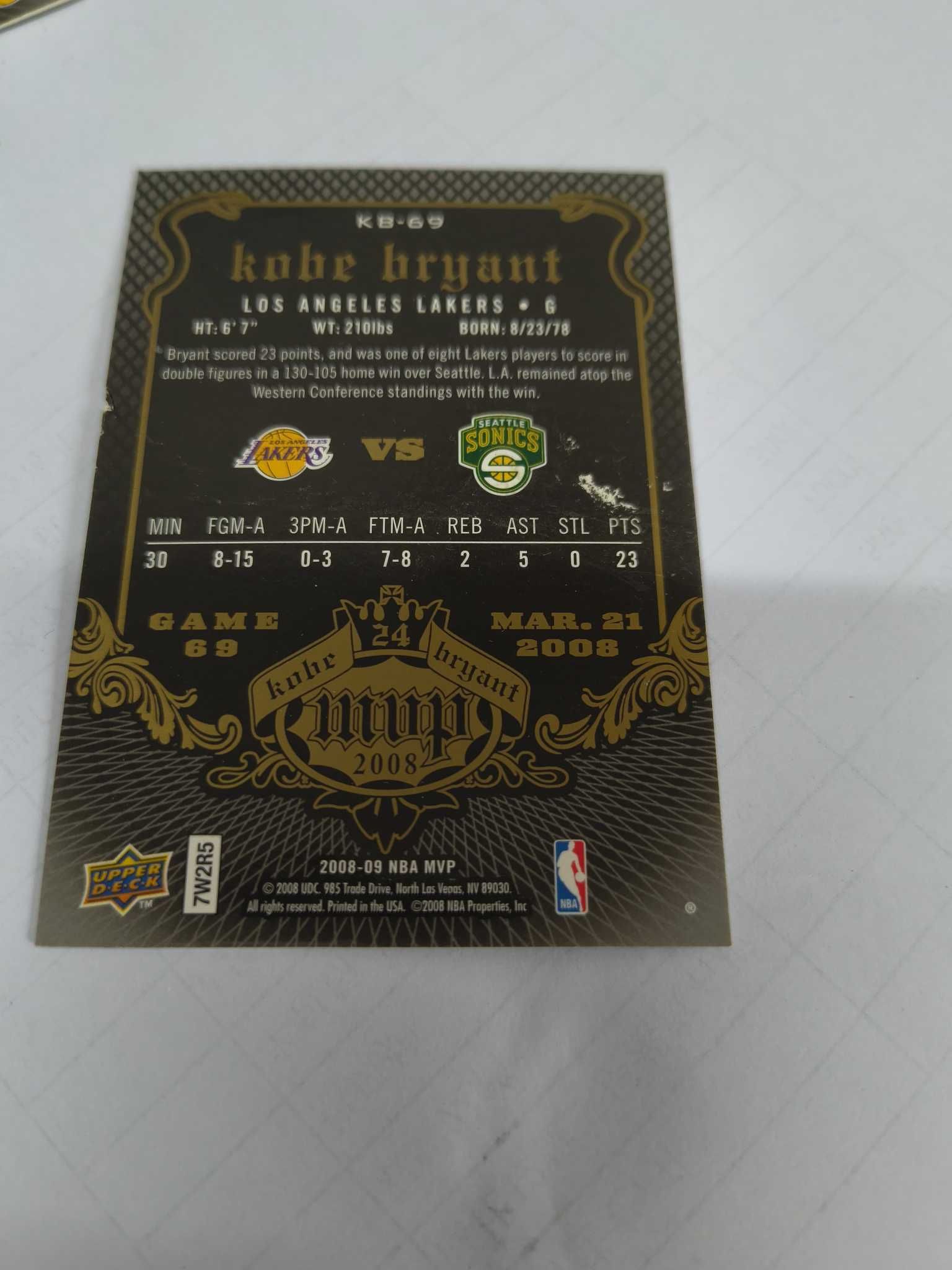 2008 Upper Deck MVP Kobe Bryant 科比 mvp 湖人队 有胶痕 角顿 卡片如图
