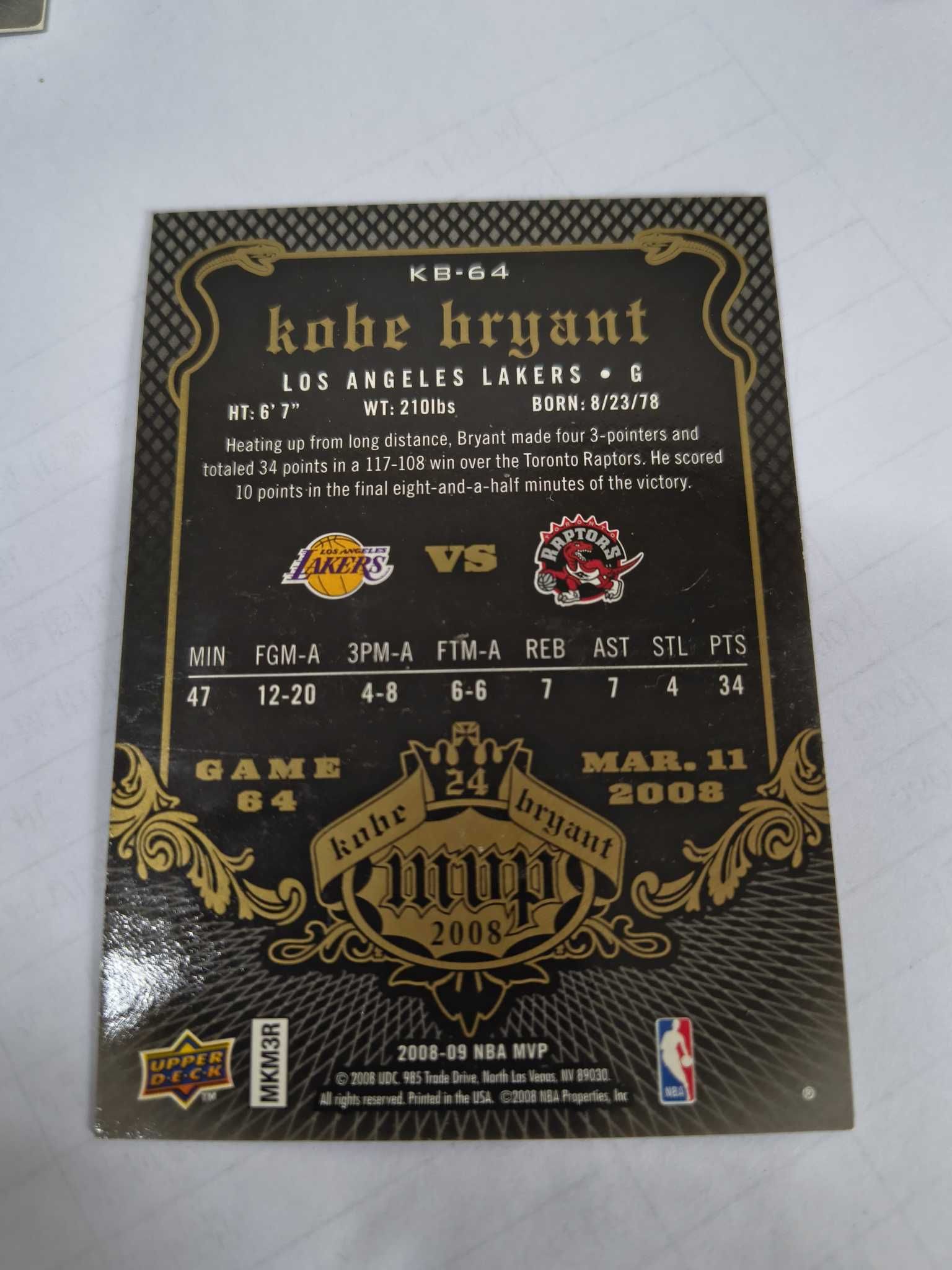 2008 Upper Deck MVP Kobe Bryant 科比 mvp 湖人队 有胶痕 角顿 卡片如图