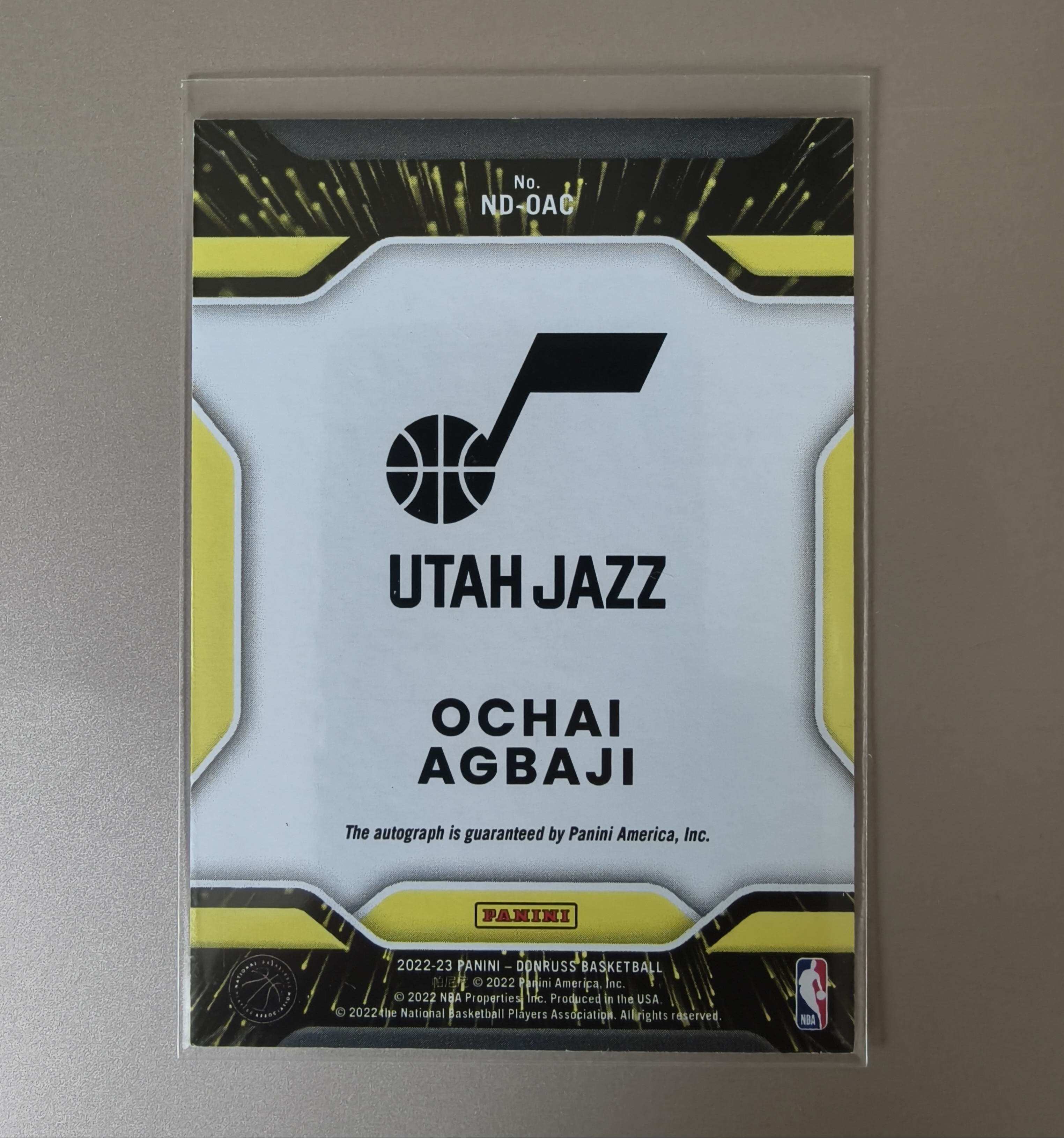 2022-23 Panini Donruss Ochai Agbaji RC 阿巴基 阿巴吉 杜蕾斯卡签新秀 明日 第一版签字 卡品很好签字墨迹清晰如图 猛龙