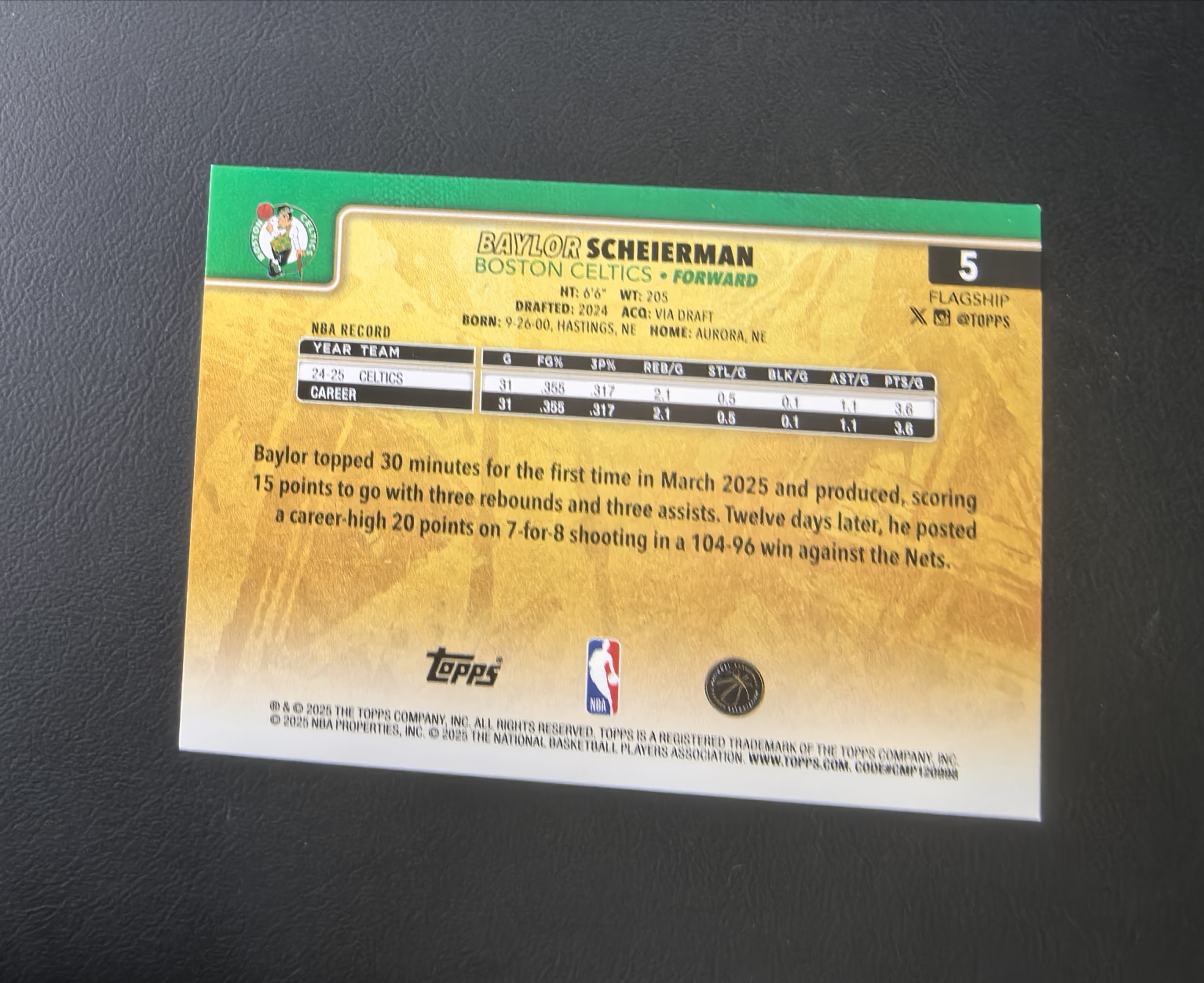 2025 Topps Chrome Baylor Scheierman 凯尔特人 队标 贝勒 沙伊尔曼 变化版 Base 大比例 金背 不保卡品 介意勿拍 投资收藏必备