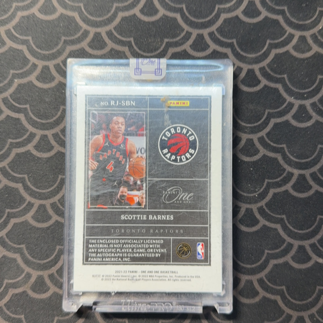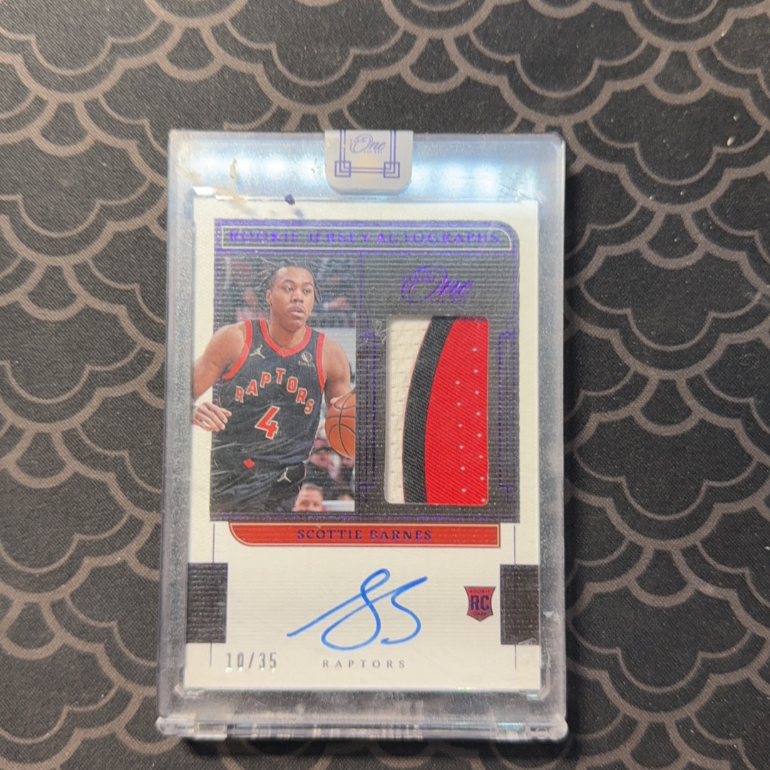 2021-22 Panini One and One Scottie Barnes 斯科蒂 巴恩斯 签字 卡签 one 35编 紫平行 暴力切割 三色patch 原封砖 墨迹完美