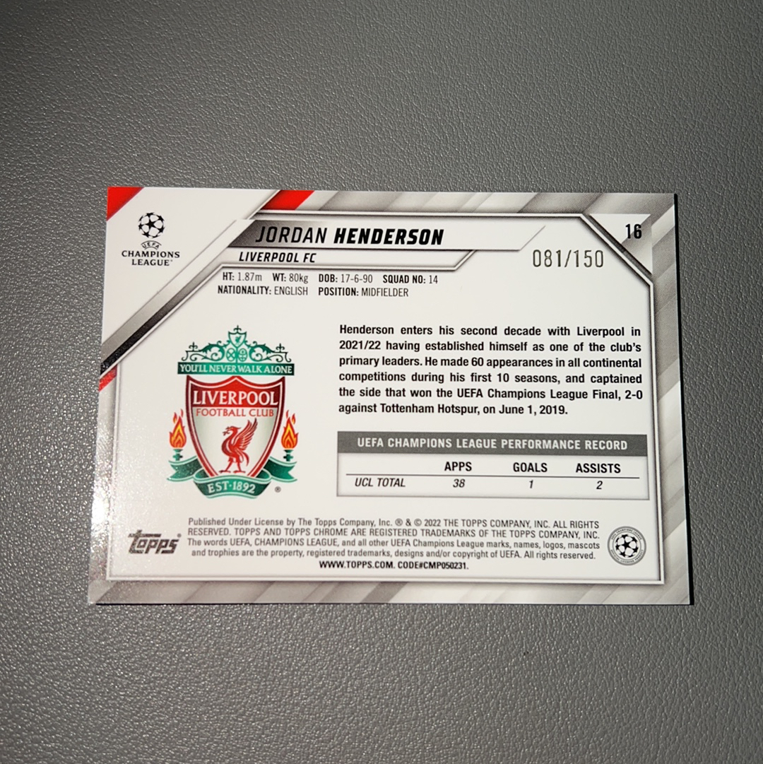 2021-22 Topps Chrome Jordan Henderson 亨德森 利物浦 功勋队长 英格兰 欧冠 81/150编 蓝折 布伦特福德 卡品如图 收藏必备