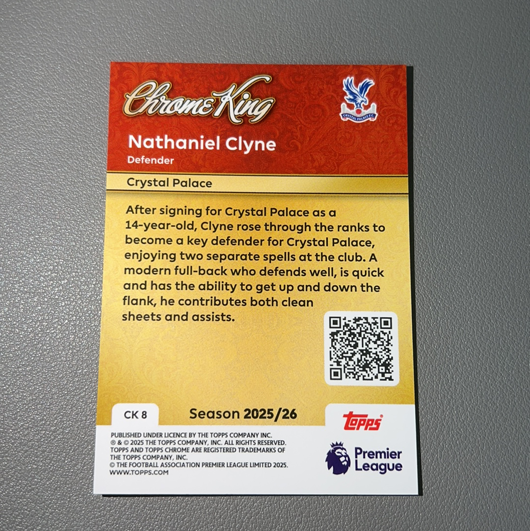 2025-26 Topps Premier League Nathaniel Clyne 纳撒尼尔 克莱因 水晶宫 利物浦 英超 Chrome Kings 特卡 银折 折射 轻印如图