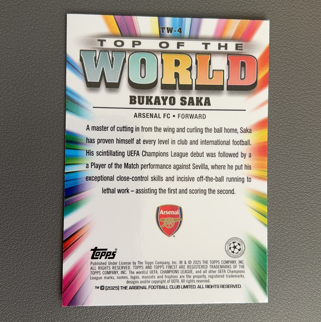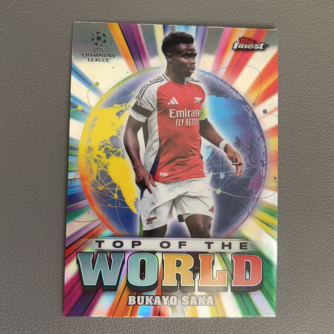 2024-25 Topps Finest 欧冠 欧战 阿森纳 英格兰 萨卡 Bukayo Saka 世界之巅 顶端 Top of The World 特卡 银折 收藏必备