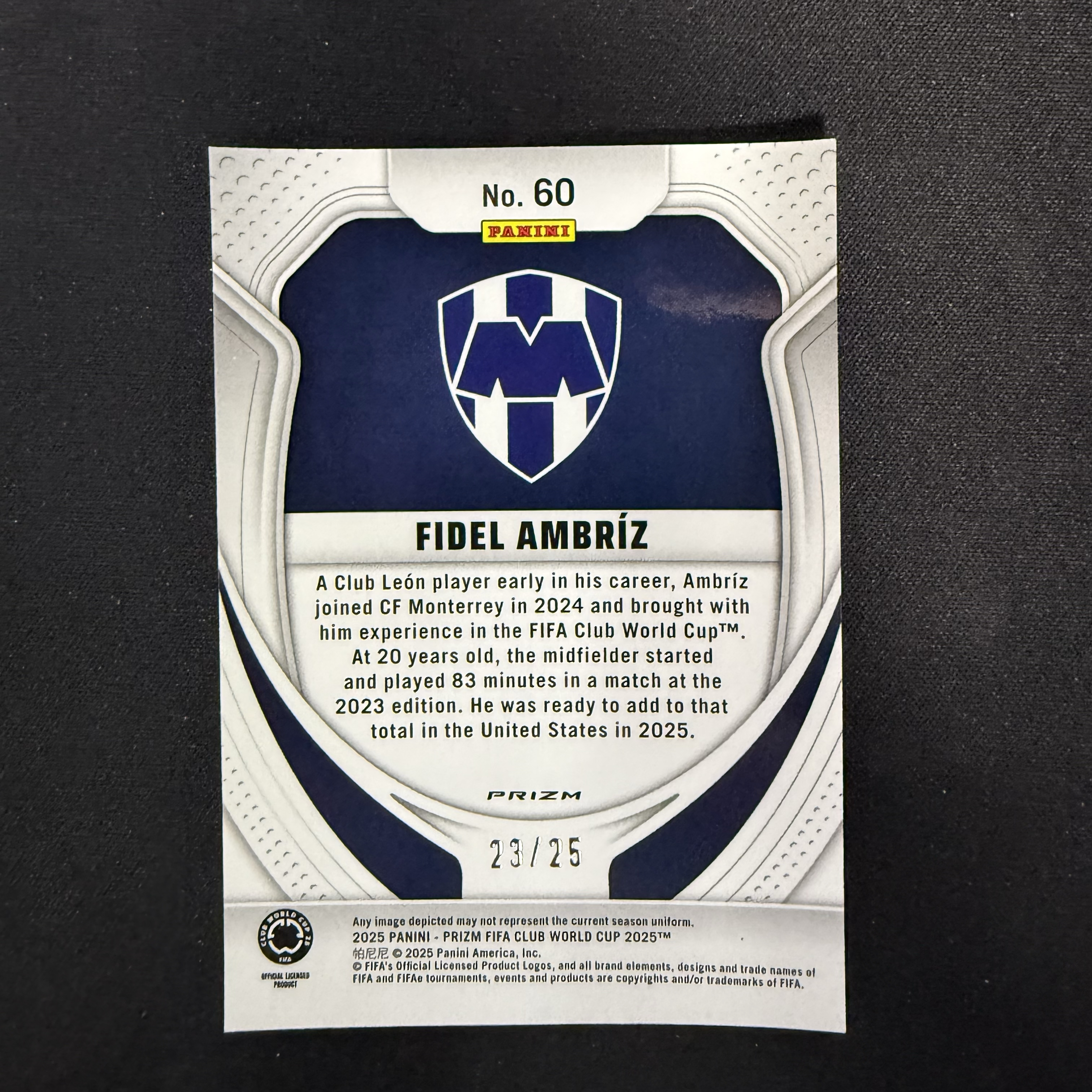 2025 Panini Prizm FIDEL AMBRIZ RC 【SC拍卖】世俱杯 pz 阿姆布里斯 蒙特雷 新秀 23/25编 收藏必备(辣酱)