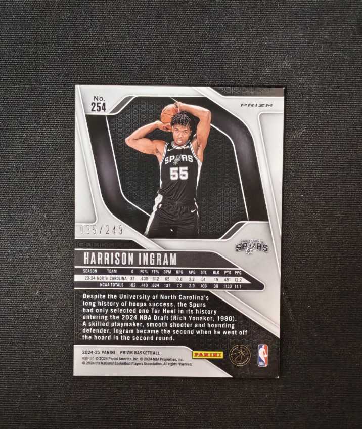 《拍多少回款多少》2024-25 Panini Prizm Harrison Ingram PZ 马刺 哈里森 英格拉姆 新秀RC 银瀑布折 249编 卡品如图 投资必备 请阅读商品描述
