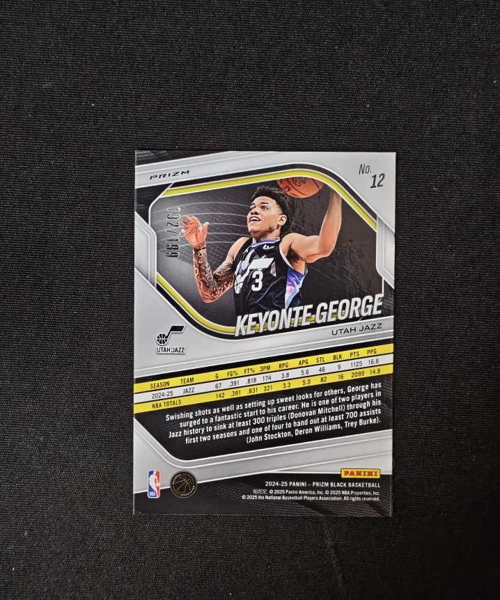 《拍多少回款多少》2024-25 Panini Prizm Keyonte George PZ BLACK 爵士 基昂泰 乔治 蓝折 132/199编 折射 近期大热 投资必备 卡品如图