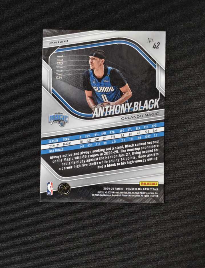 《拍多少回款多少》2024-25 Panini Prizm Black Anthony Black 魔术 安东尼 布莱克 175编 白折 折射 卡品如图 收藏必入 近期大热 隔扣杜兰特 投资必备