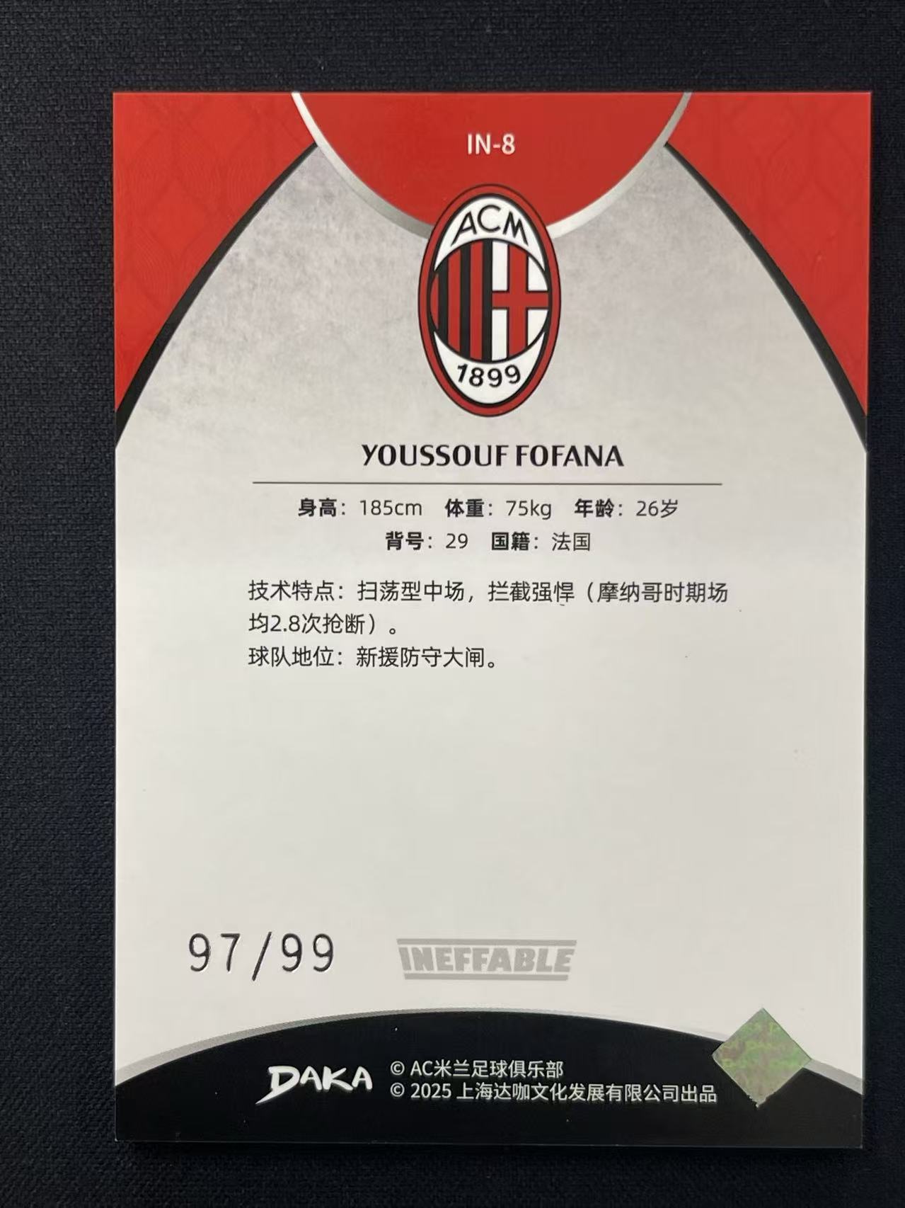 2024-25 DAKA AC米兰 MilanOne&Two队盒 Fofana 福法纳 Ineffable 厚卡Base 97/99编 银平行 IN-8 卡品如图 凑套必备