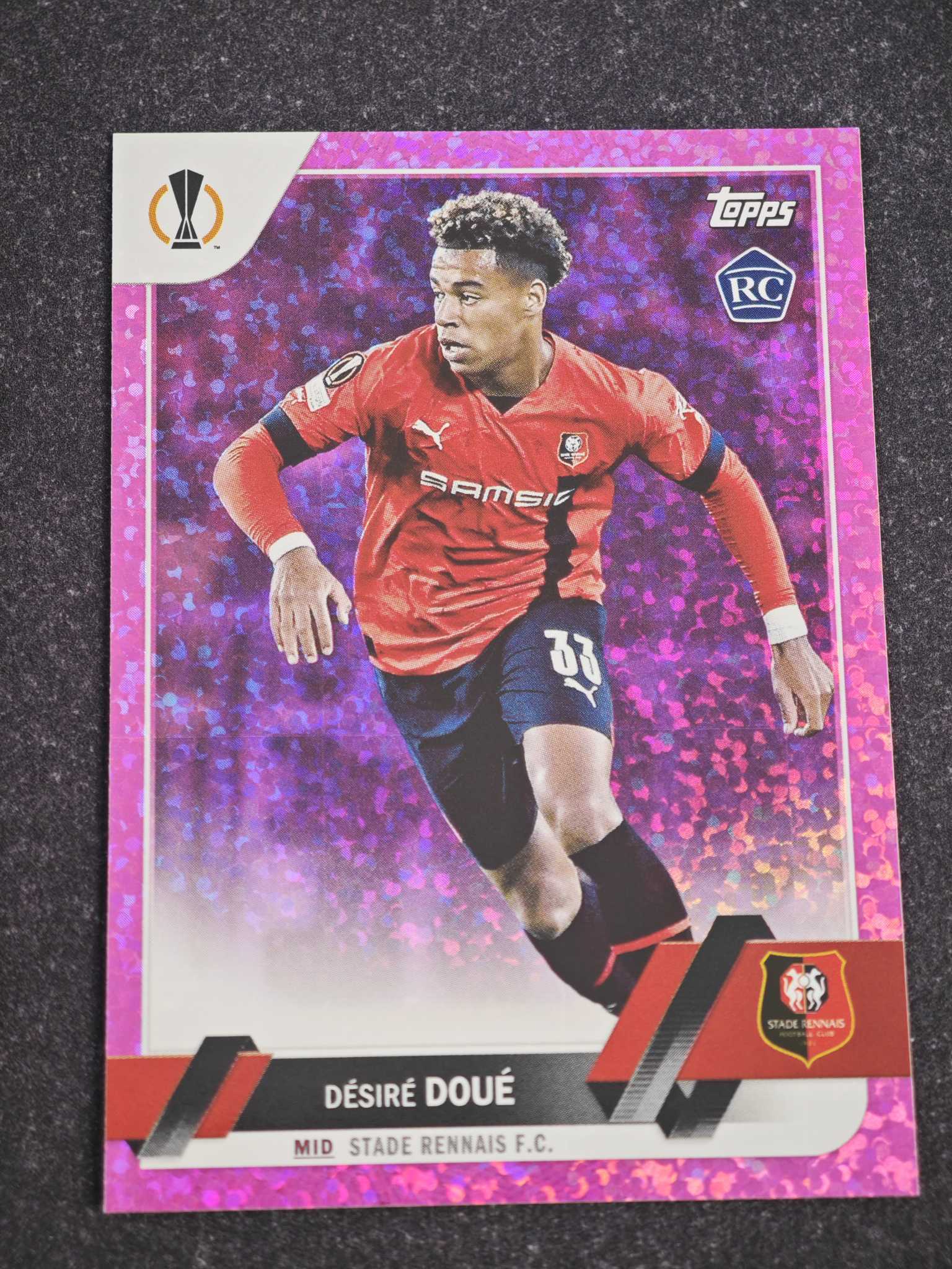 【小灰机】2022-23 Topps ucc Désiré Doué 杜埃 rc 新秀 粉斑点折 粉折 折射 欧战 欧冠 ucc 正系列 法国 大巴黎 雷恩 未来大涨 卡品如图 4521
